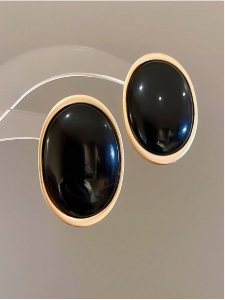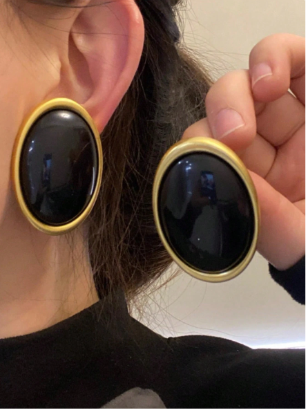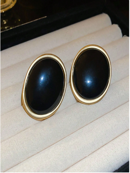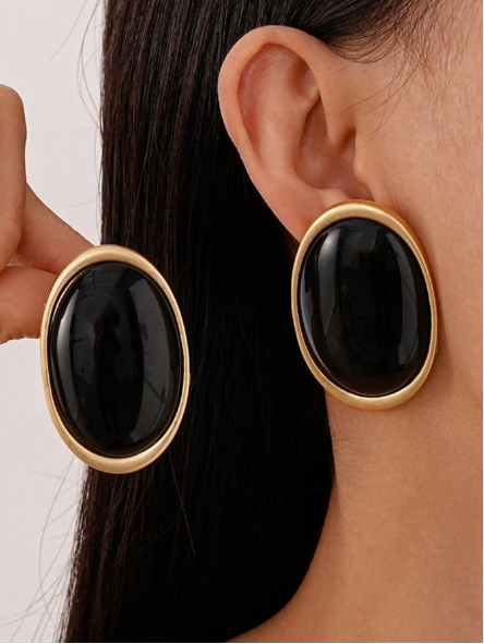 1 par de aretes tipo studs exagerados de forma de elipse metálica negra, aretes elegantes y simples de estilo real, adecuados para bodas, fiestas y otras ocasiones