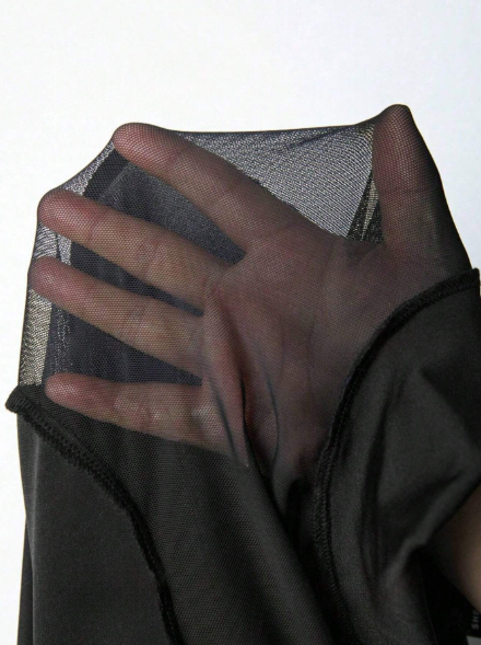Calvaya Camiseta de manga larga de malla de contraste para mujer talla grande