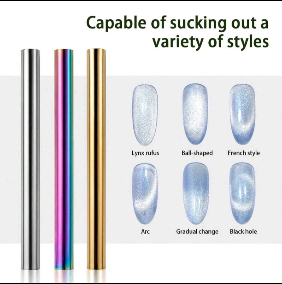 Herramienta magnética para uñas, bolígrafo magnético de doble cabeza súper largo, barra magnética para esmalte de uñas de ojos de gato 3D, DIY 3D magnético, para salón, estudio o hogar, disponible en oro, plata y brillo, artículos para uñas, herramientas para uñas, herramientas de arte para uñas, de vuelta a la escuela, uñas, herramientas para uñas para uñas postizas