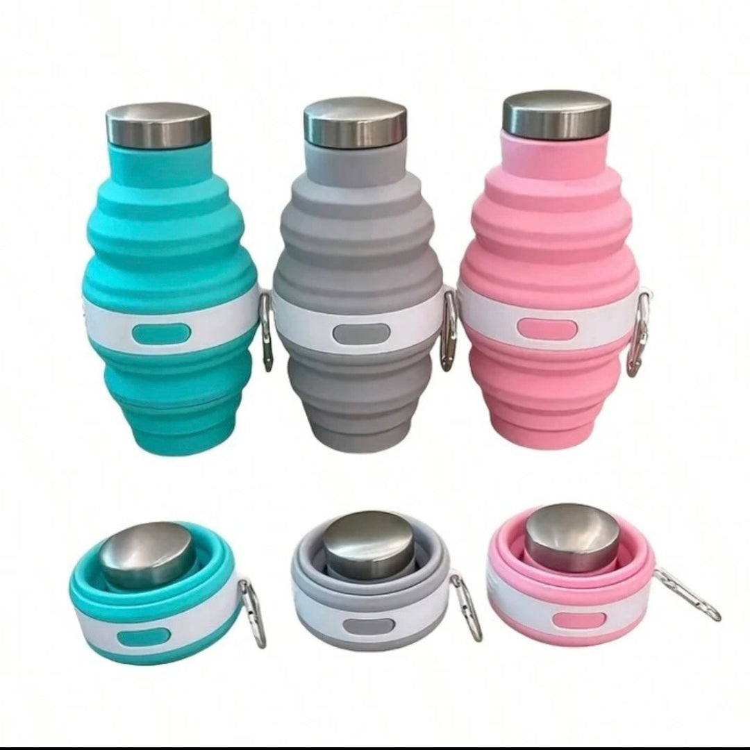 1 pieza Botella de agua plegable y retráctil de doble boquilla, suave y que no se deforma fácilmente, un regalo para familiares/amigos, para uso al aire libre, camping