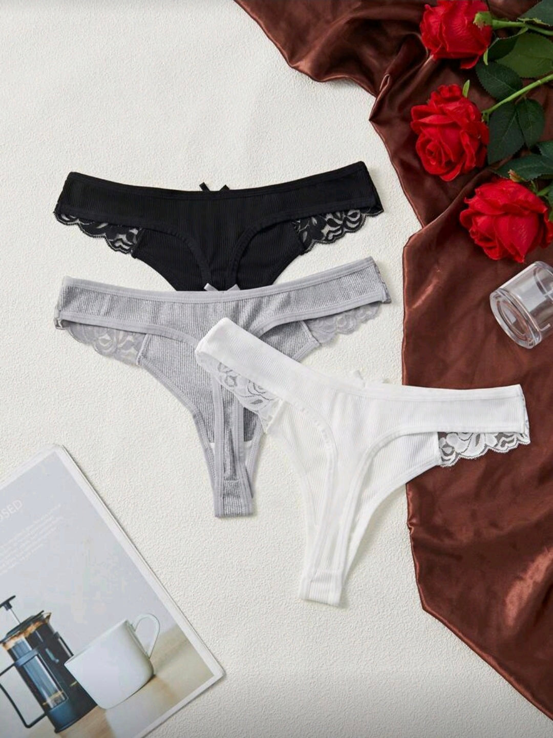 Paquete de 3 bragas de mujer con encaje sexy y parches, de estilo casual y sencillo