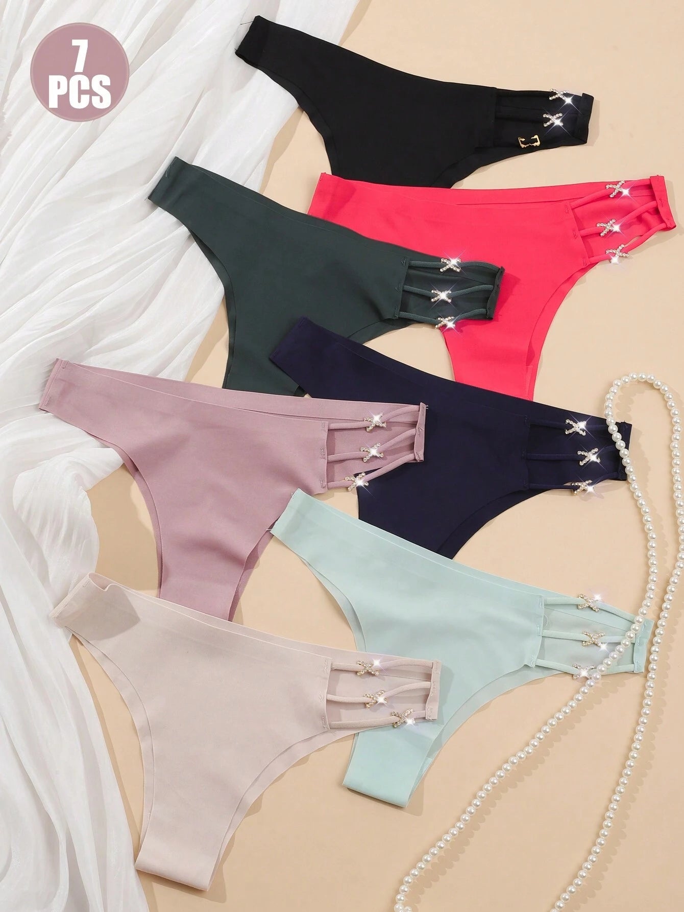 7 piezas Ropa interior sin costuras para mujer, bragas con aros sólidos