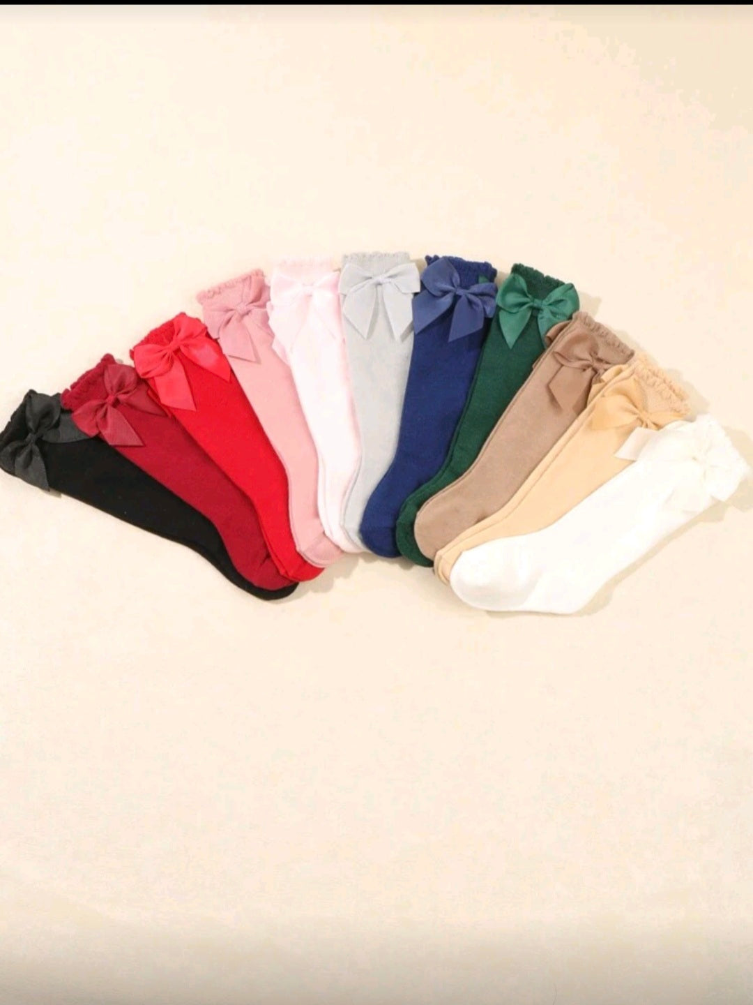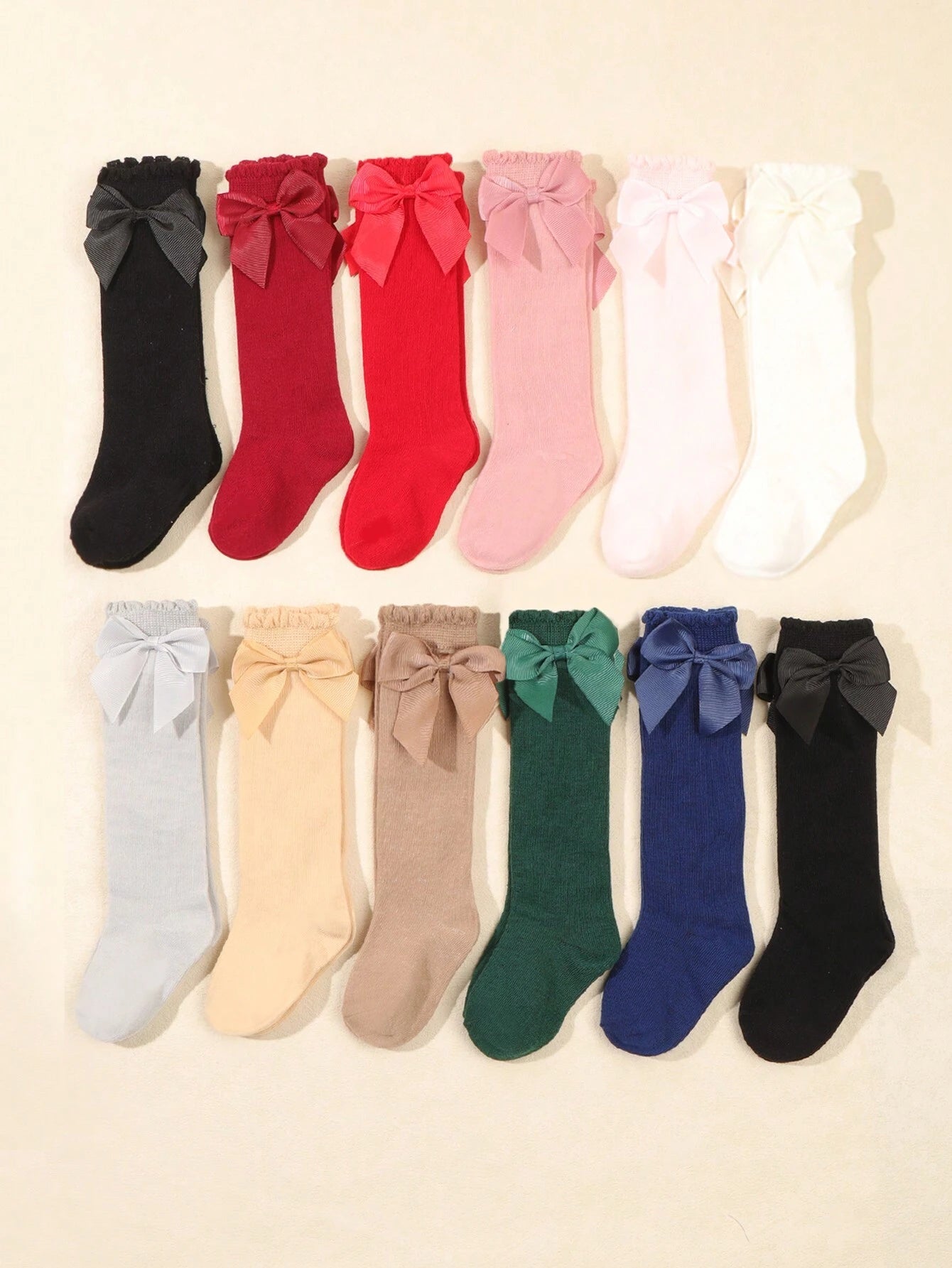 10 pares de color aleatorio Calcetines con lazo decorativos lindos para niñas bebés y niñas pequeñas, calcetines lindos hasta la rodilla