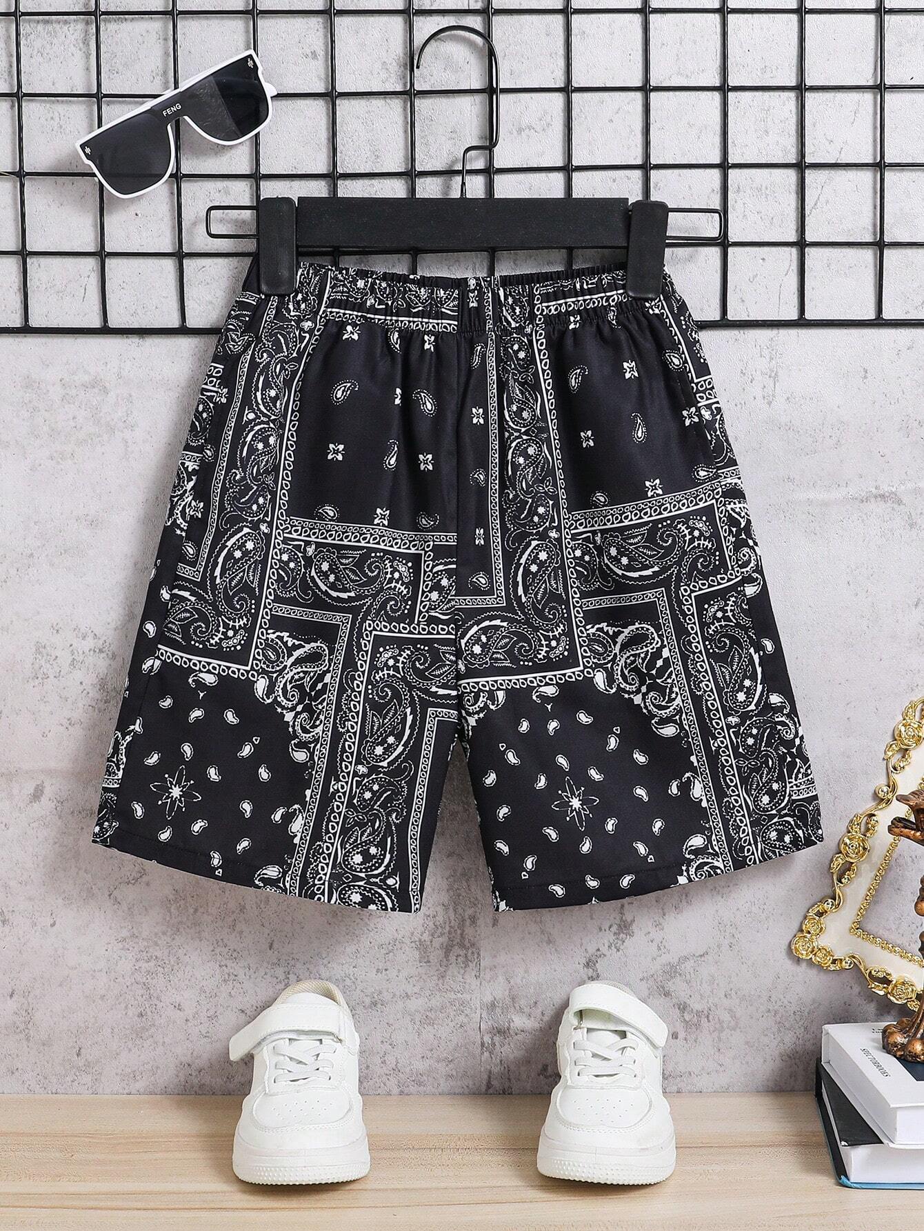 SHEIN Shorts tejidos holgados impresos de deporte cómodos y casuales para niños preadolescentes