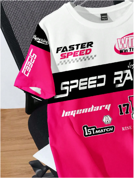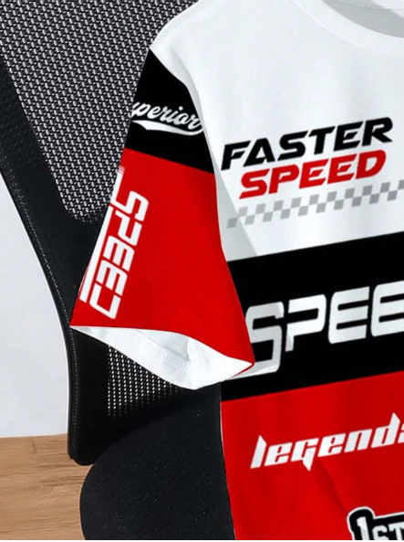 SHEIN EZwear Estilo deportivo casual Conjunto de carreras, Camiseta de manga corta con gráfico, Corte holgado para mujeres