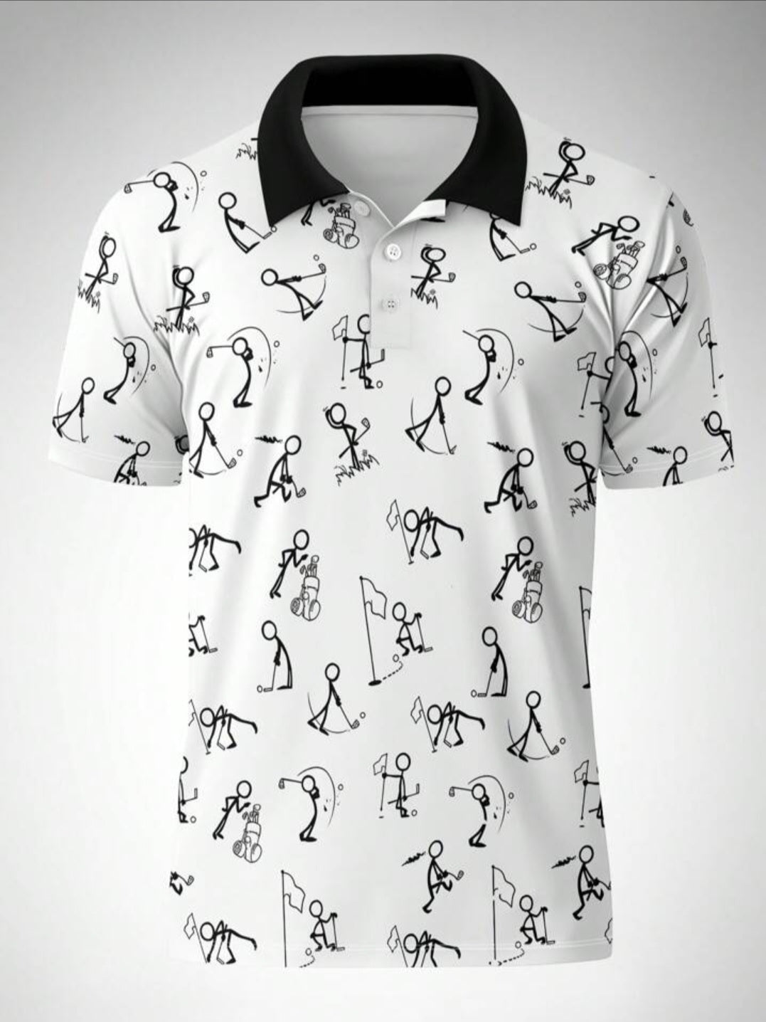 Camisa polo de manga corta de moda casual para hombre con estampado divertido de figuras en toda la prenda