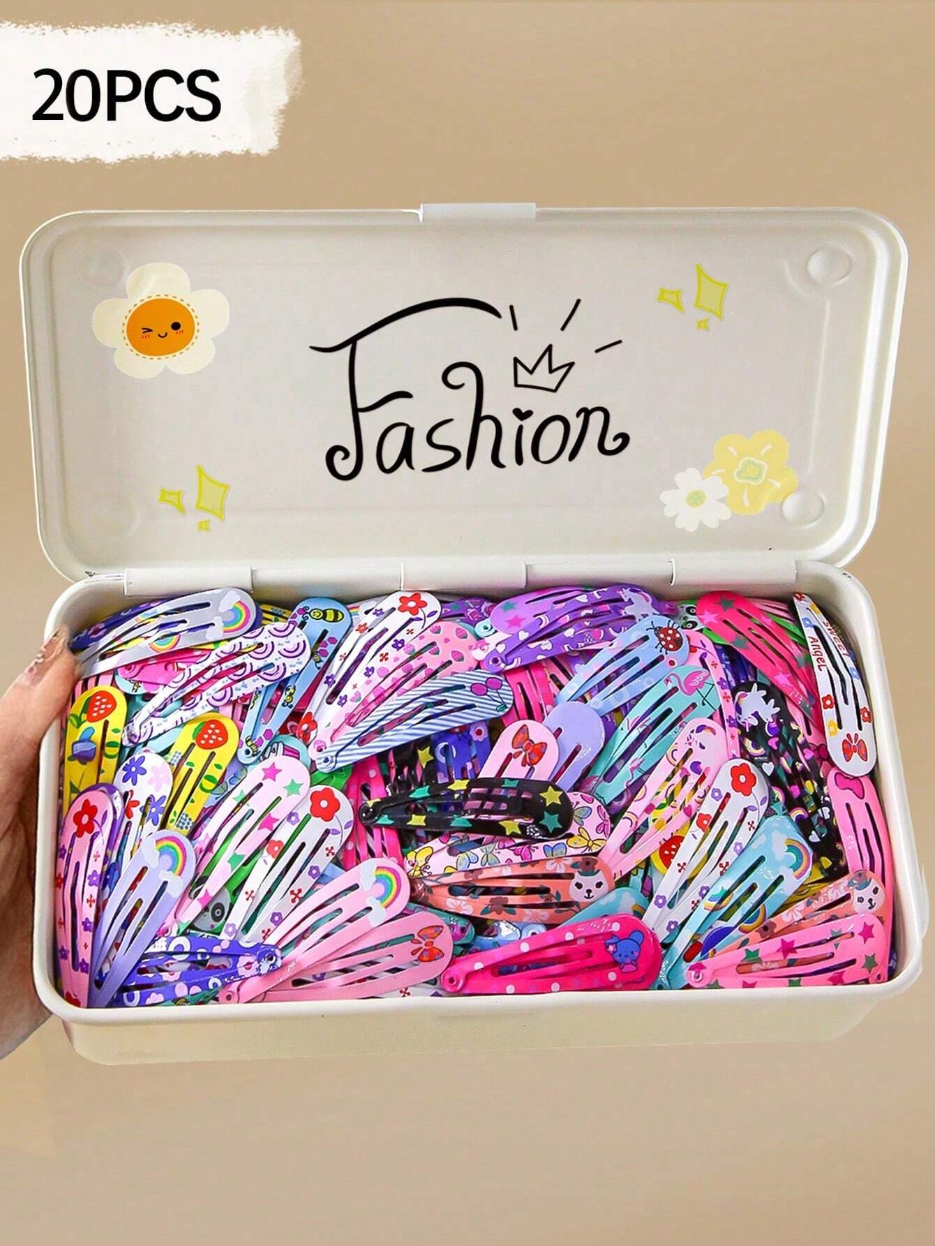 20 piezas Clips de pelo con accesorios de flores, lazos, estrellas y unicornios de estilo INS de gotas de agua de color aleatorio para niñas