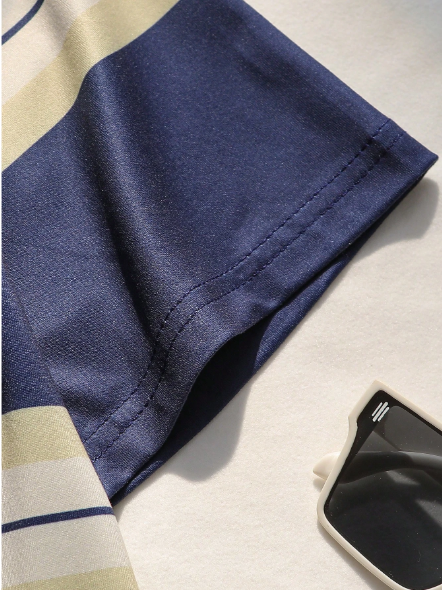 Conjunto informal de 2 piezas de camiseta con rayas en contraste y pantalones cortos de verano para niño preadolescente.