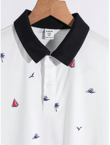Conjunto de camiseta de manga corta y pantalones cortos casuales de estilo escolar de vacaciones para niño preadolescente.