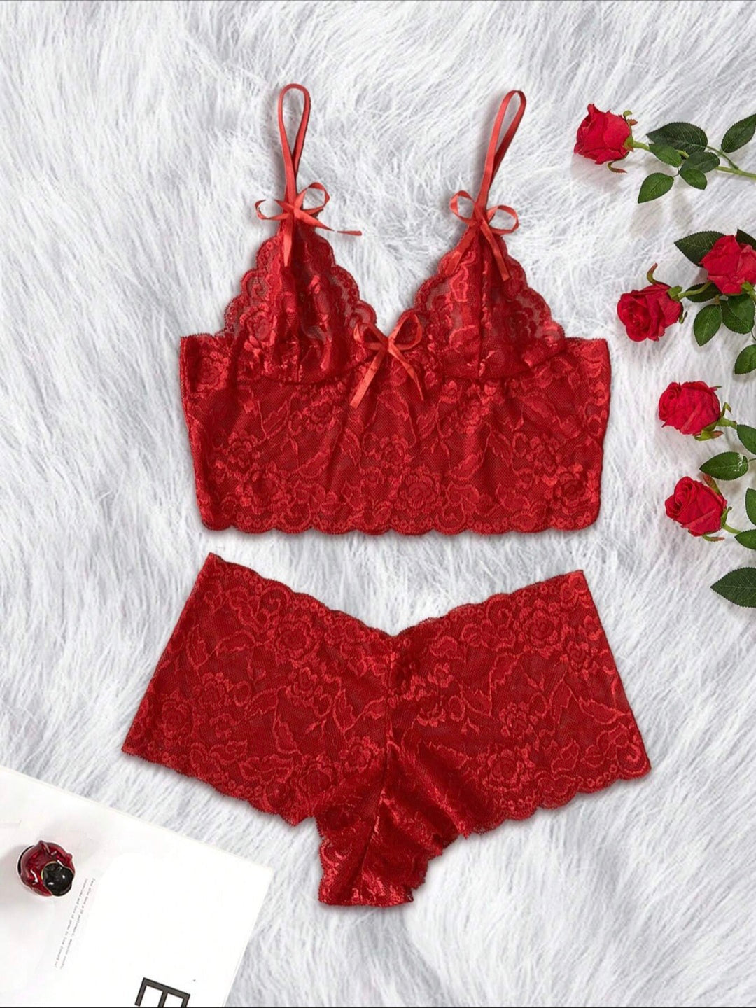 1 juego de lencería sexy roja con sujetador transparente y panty