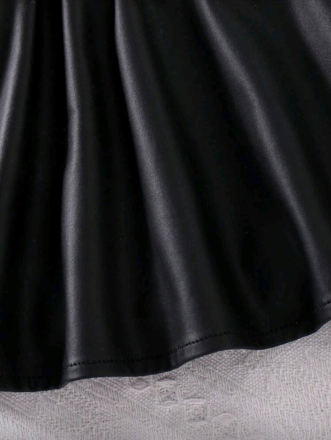 Set de 2 piezas de Top de manga larga con cuello redondo y volantes y falda negra lisa para niñas bebé en estilo vintage informal