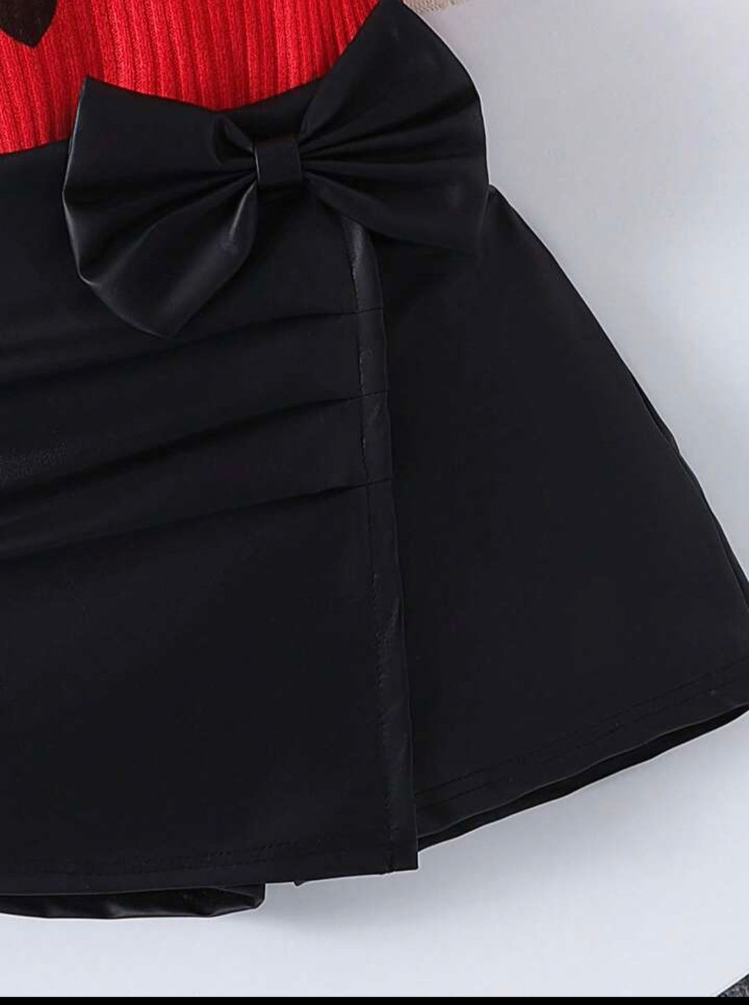 Set de 2 piezas de top de manga corta con estampado de corazón y shorts con lazo decorativo para niñas, para verano