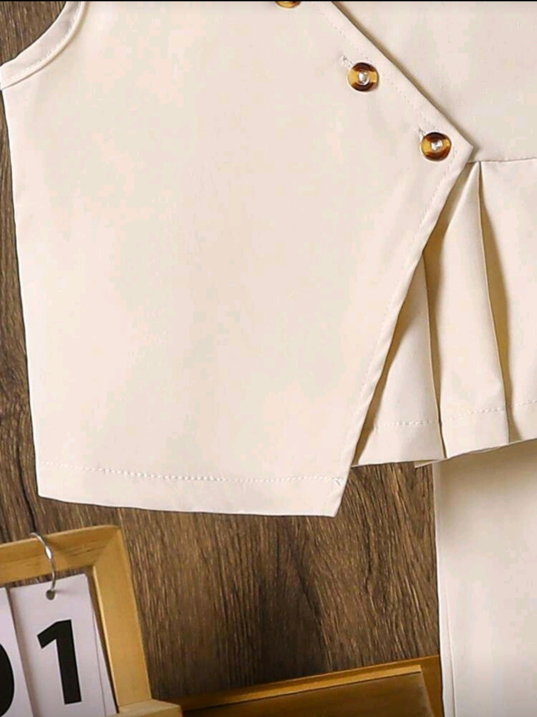 Conjunto de 2 piezas para niñas: top sin mangas con cuello en V con botones y pantalones con cintura elástica, adecuado para uso diario, juegos al aire libre, viajes, escuela, vacaciones de primavera/verano, casual