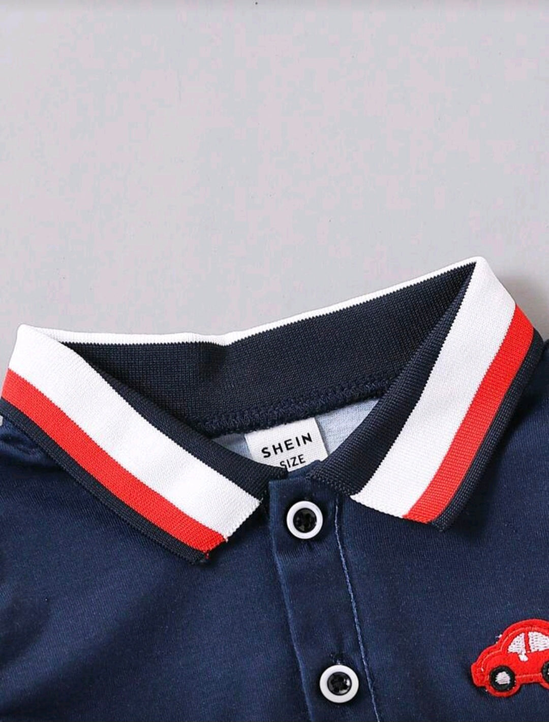 SHEIN Set de 2 piezas para niños pequeños: Camisa tipo polo con rayas y bordado de carro de dibujos animados con ribete acanalado y pantalón corto de unicolor con cintura elástica, conjunto informal para primavera/verano