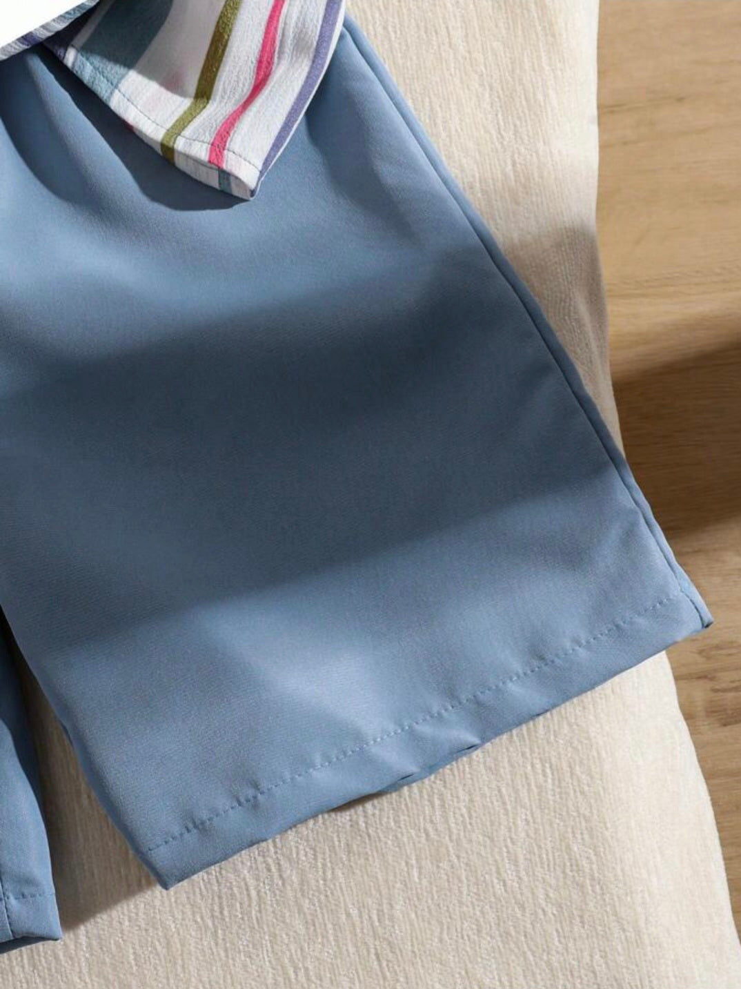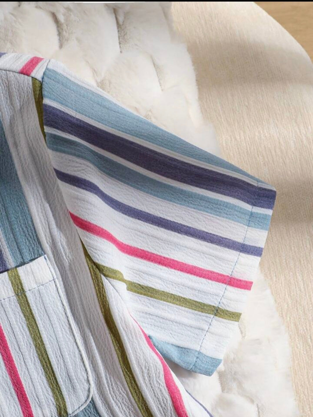 Set de 2 piezas de camisa a rayas y pantalones cortos informales para niños, de tela texturizada, cómodo para resort y uso diario