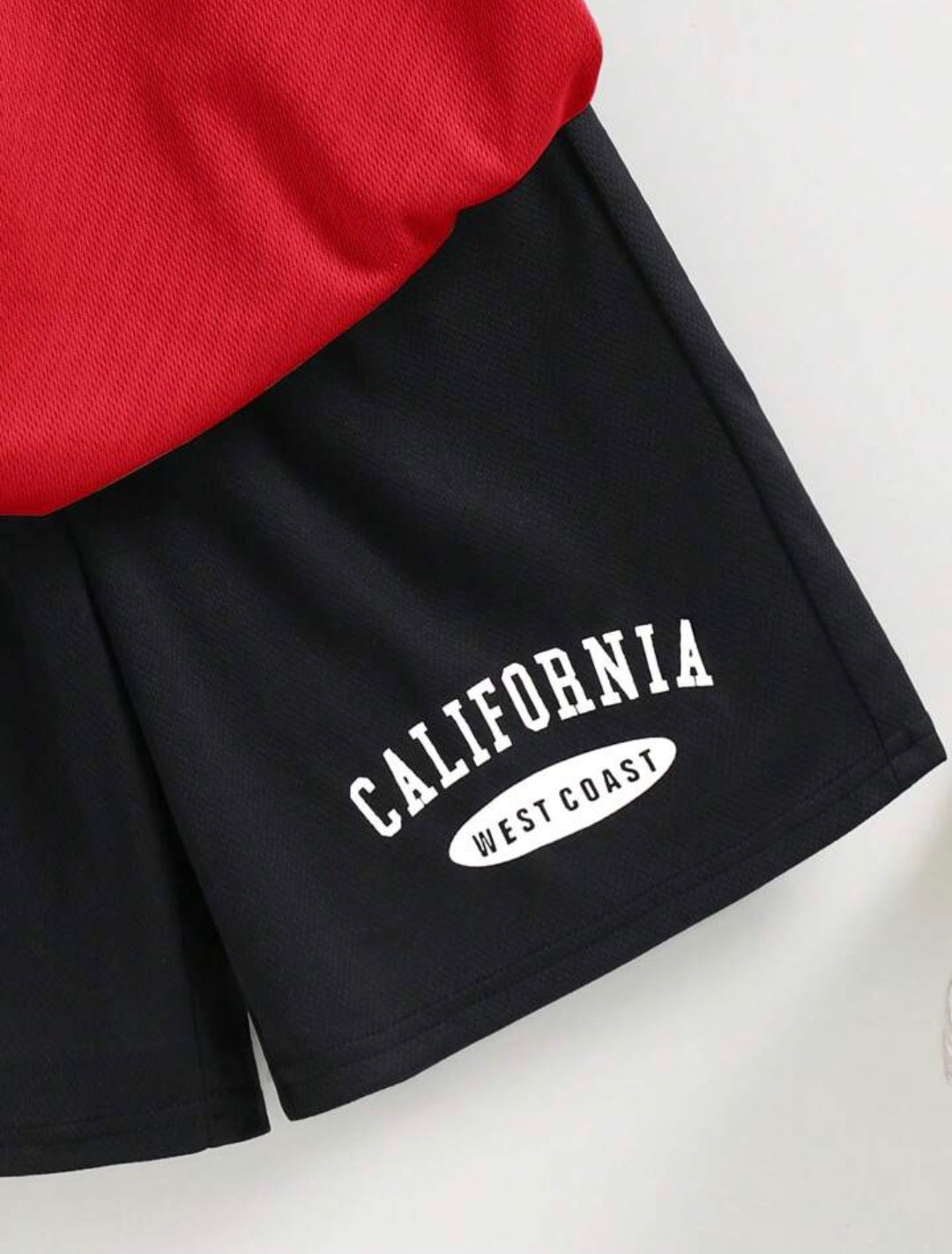 SHEIN Set de 2 piezas Camiseta de manga corta con cuello redondo holgada y estampado de letra + pantalones cortos para niños/preadolescentes, casual, versátil y cómodo, para usar en la escuela, el jardín, la playa, cumpleaños, primavera, verano, otoño, invierno