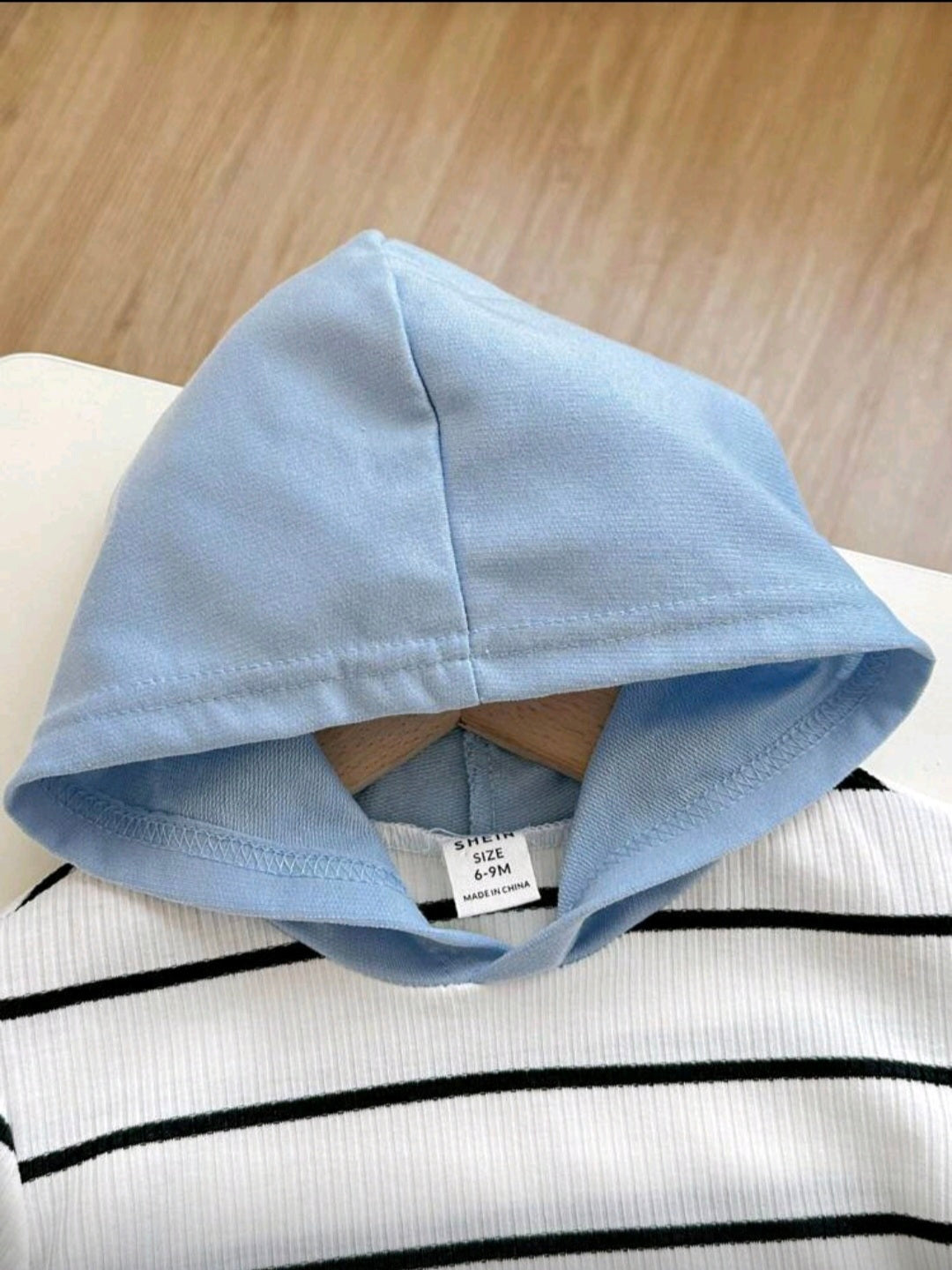 Set de 2 piezas de parte superior sin mangas con capucha y pantalones de puño elástico a rayas de color contrastante para niño/niña, conjunto informal versátil adecuado para el hogar, exterior, escuela, primavera/otoño