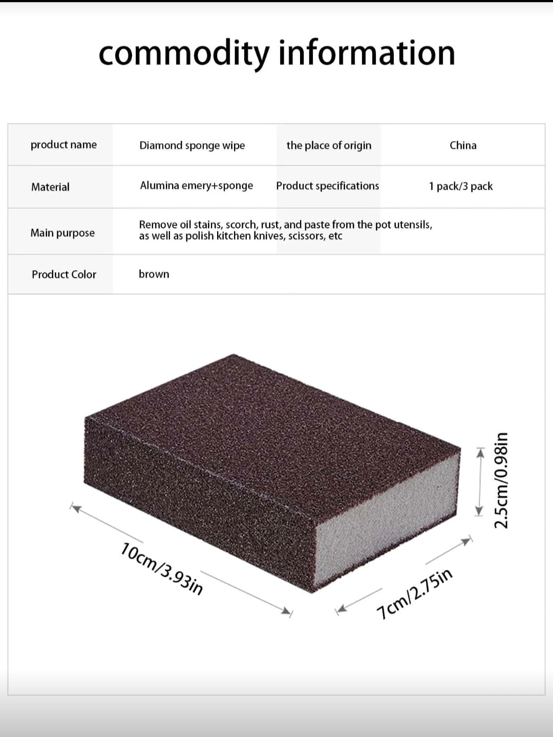 Esponja mágica de diamante 1pc, limpieza de platos y manchas de cocina, para eliminar las escalas, ollas y cepillos, utensilios para camping en la cocina