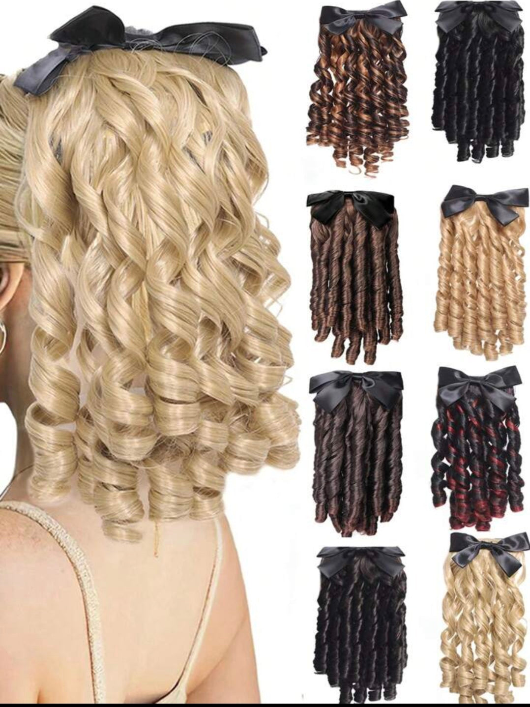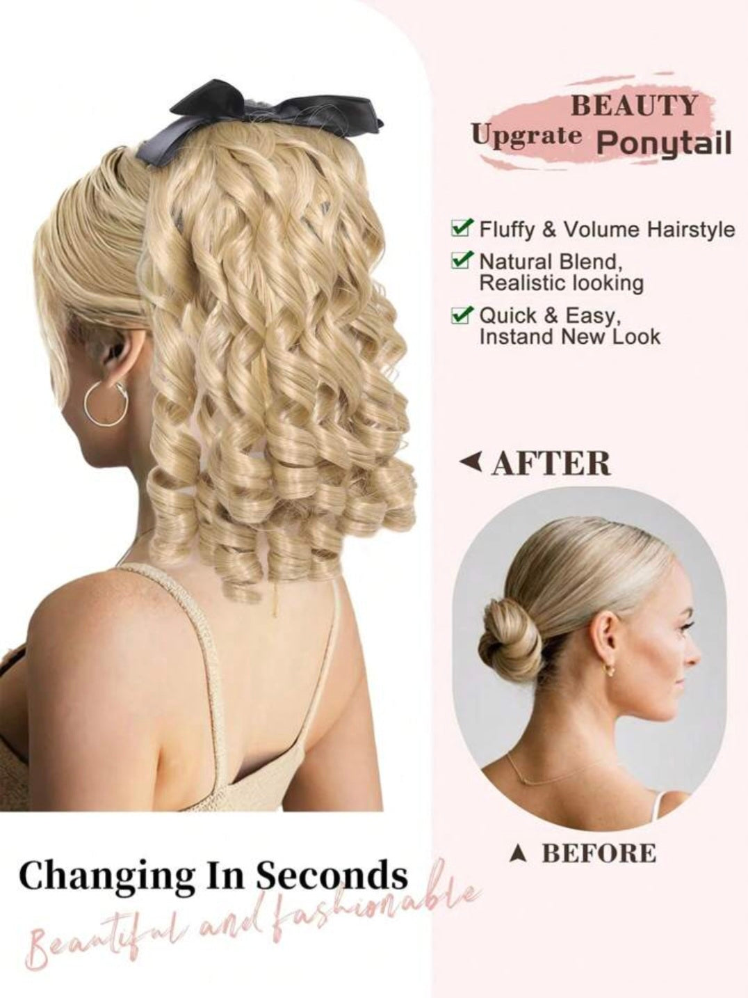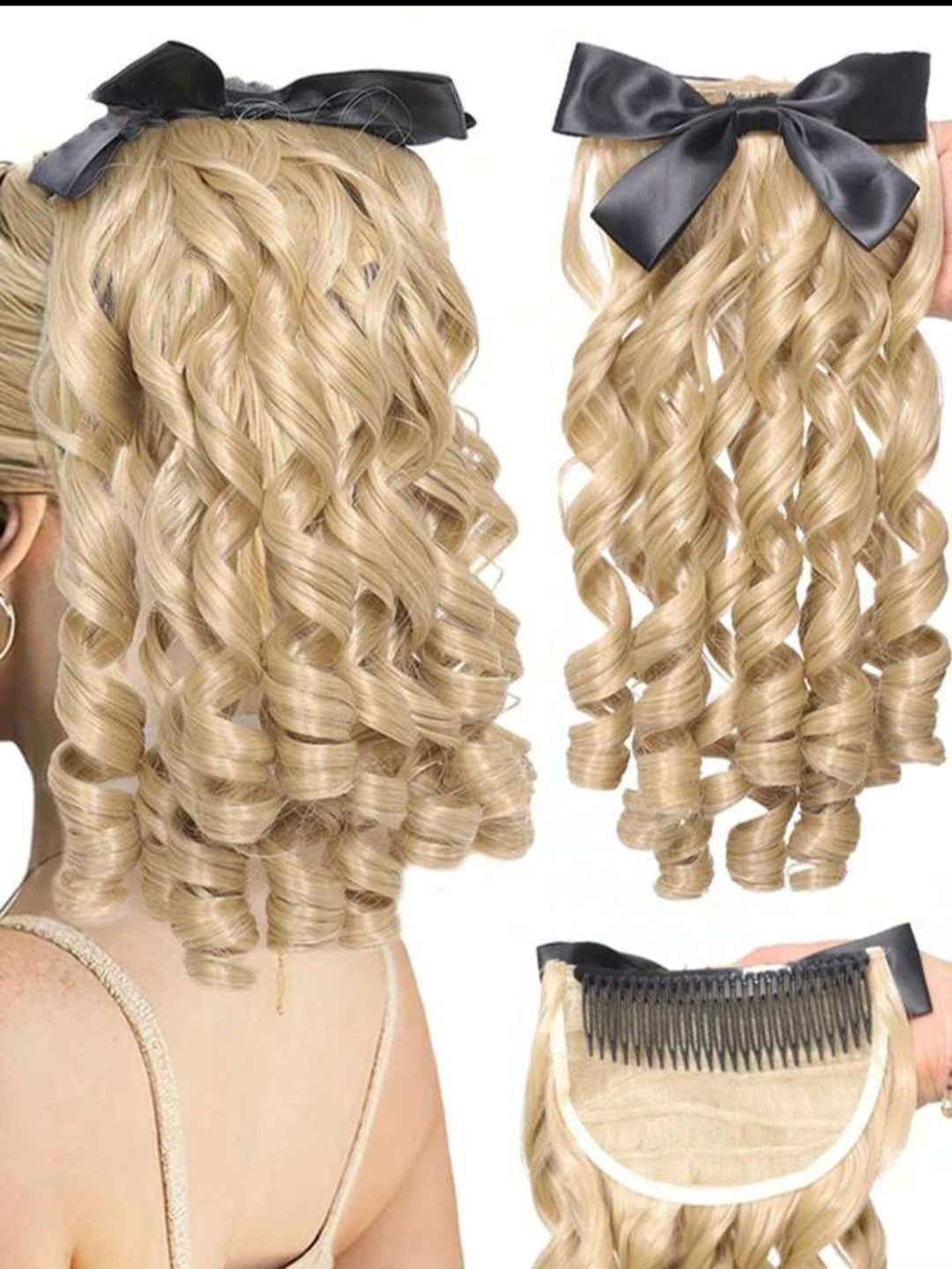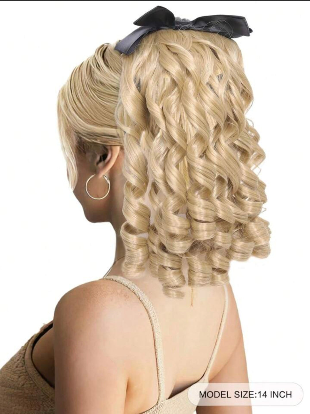 Extensión de cola de caballo sintética de 11 pulgadas con peine, estilo retro europeo de princesa con rizo abultado, extensión de cabello con clip