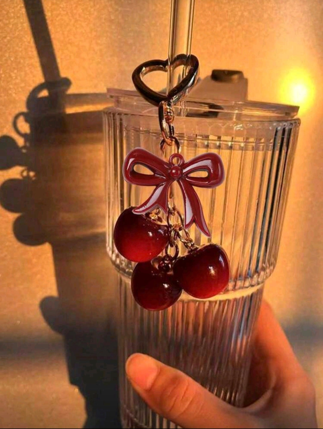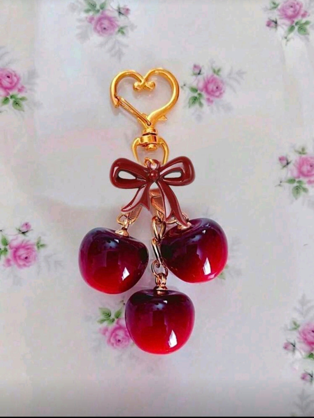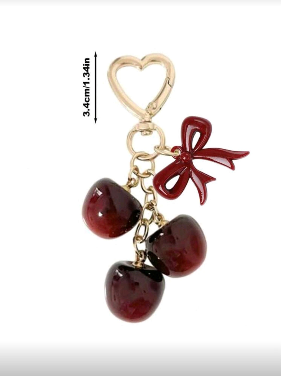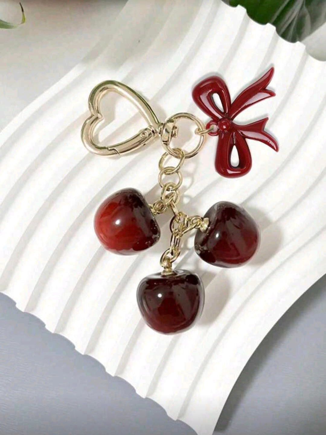 Colgante con lazo de cereza, nuevo colgante con forma de cereza grande con cristales, llavero con dije brillante con clip, materiales de resina y metal brillante, para cartera y bolso de mujer, nuevo llavero creativo con joyería femenina, fruta simulada, colgante con lazo de manzana cereza para decoración de carteras, regalo festivo