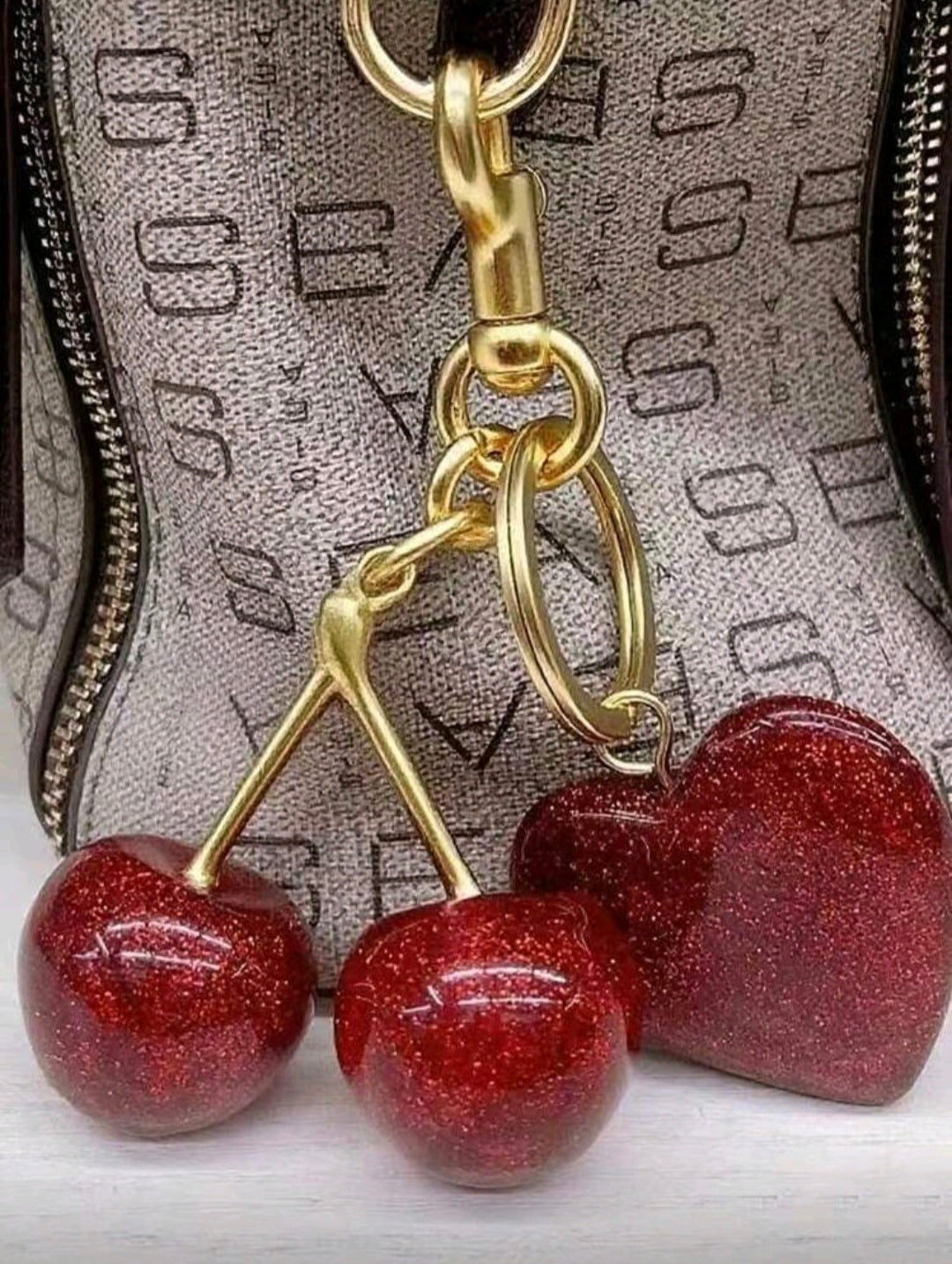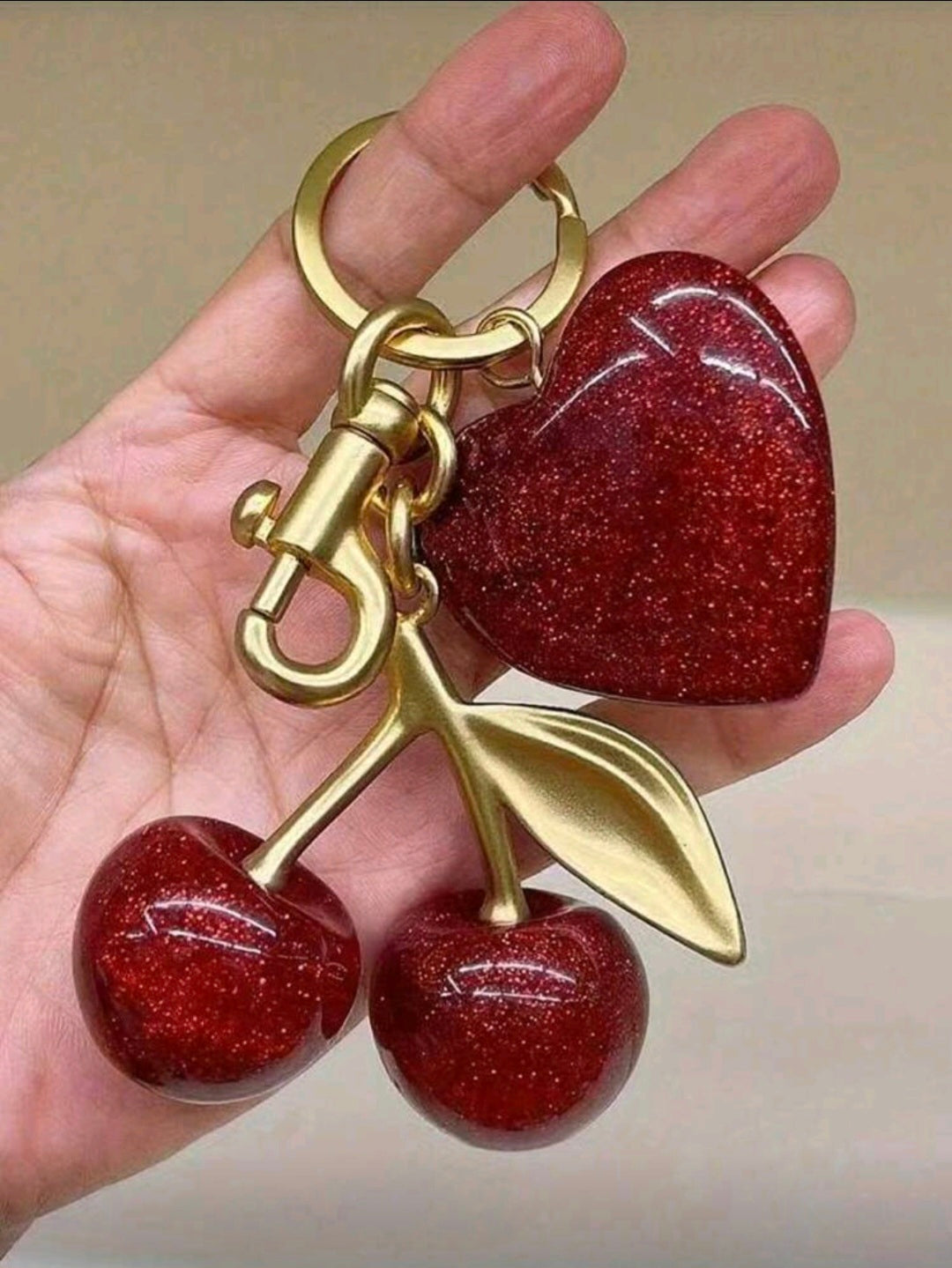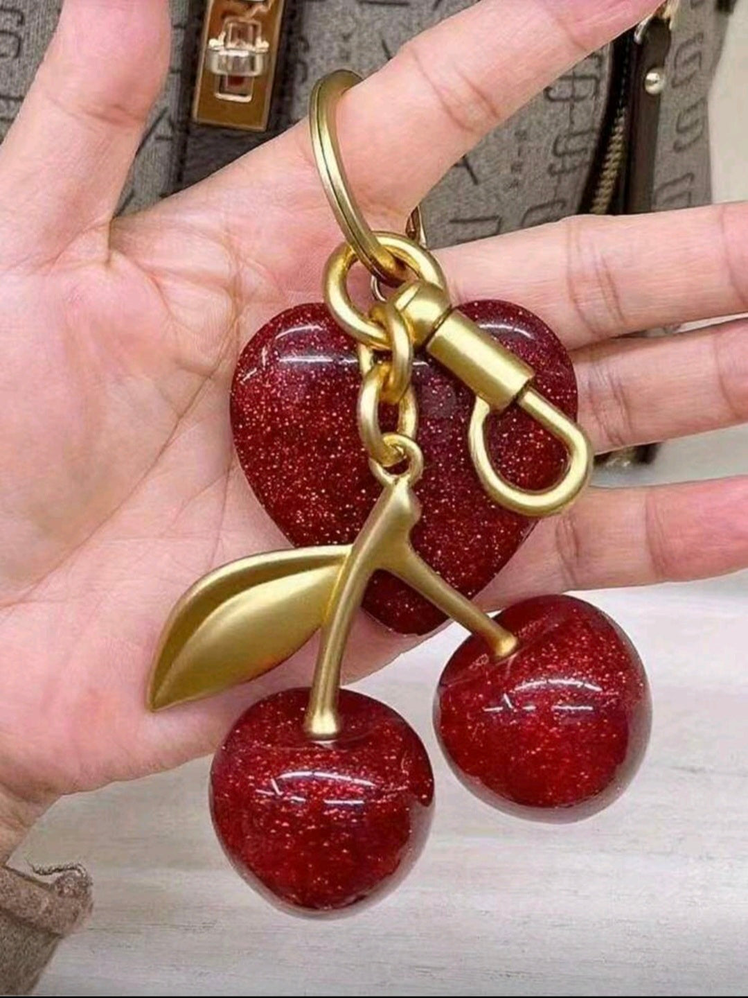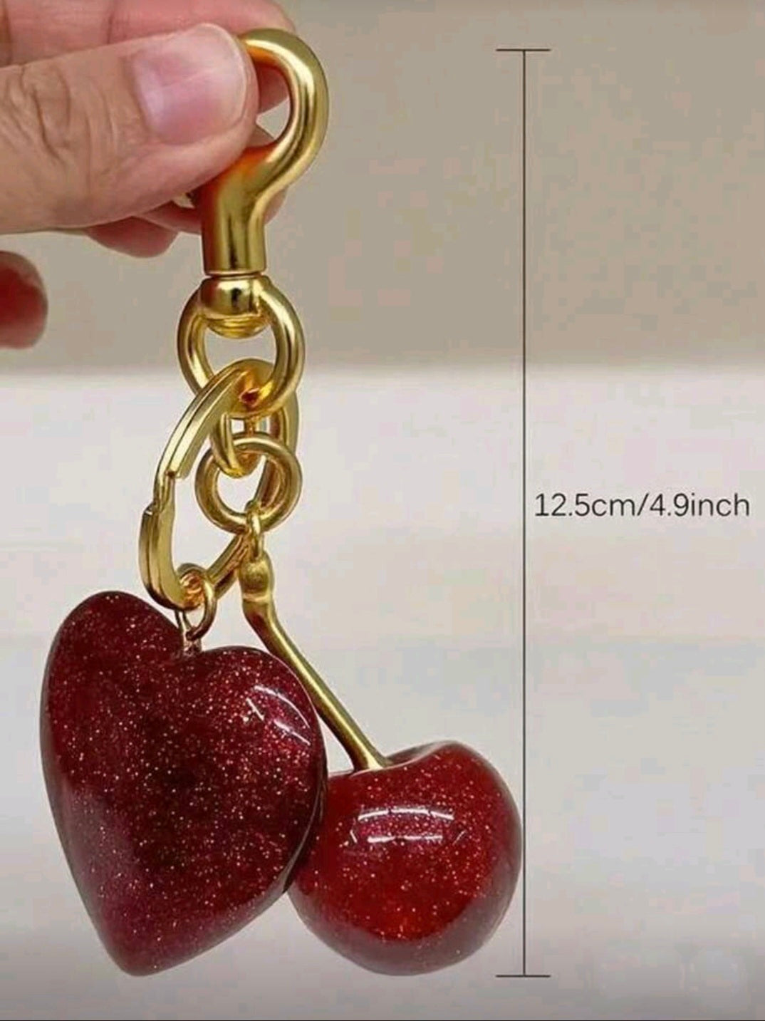 1 pieza Llavero elegante de cereza con colgante de resina brillante - Cierre de gancho en aleación para carteras y bolsos de mujer, regalo ideal para familia, amigos y parejas, regalo del Día de San Valentín, decoración de mochila, llavero para bolso, accesorios de coche para mujer