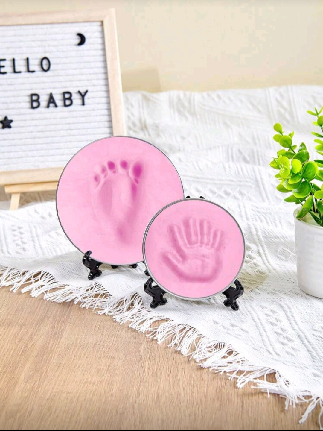 (1 Set M = 1 Almohadilla de tinta (45g) + 1 soporte + 1 molde redondo talla M) Regalo de los 100 días o 1er cumpleaños del bebé, recuerdo conmemorativo del crecimiento del recién nacido (sin cinta incluida), diámetro del molde talla M 12cm (formas de molde enviadas al azar)