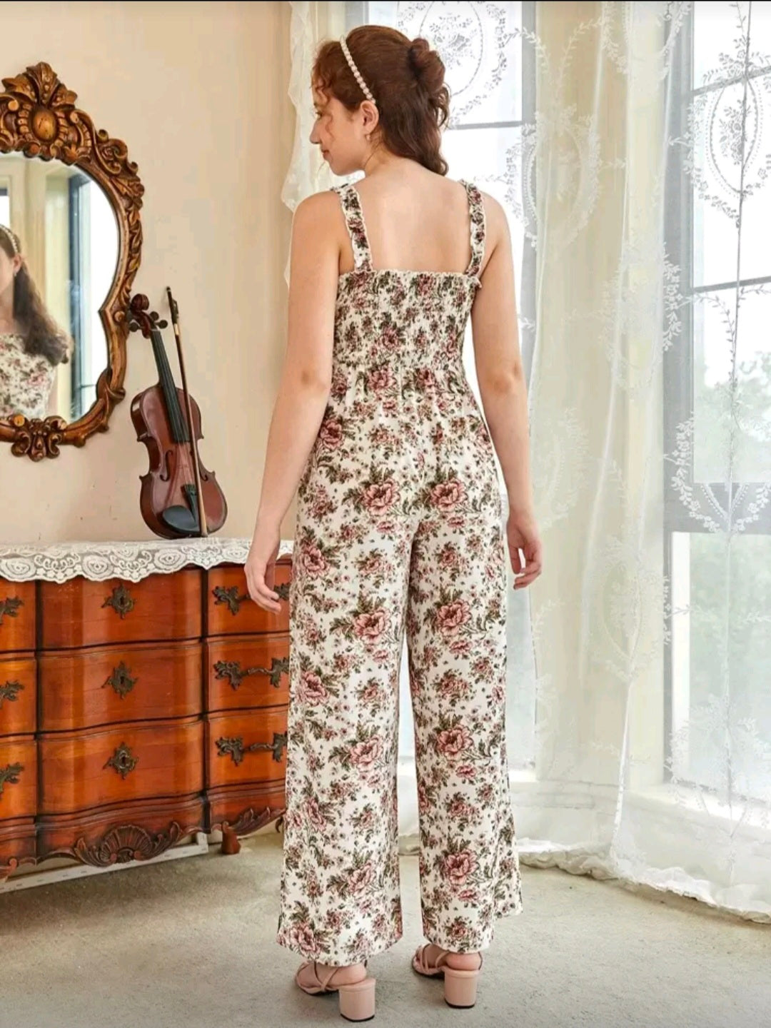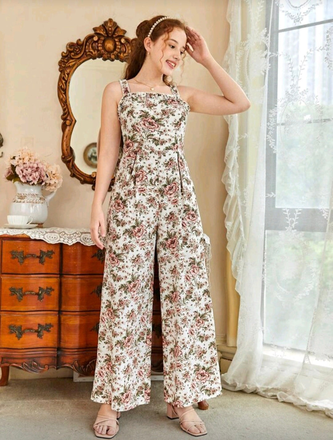 SHEIN Chicas adolescentes Mono de tirantes de pierna ancha con estampado floral