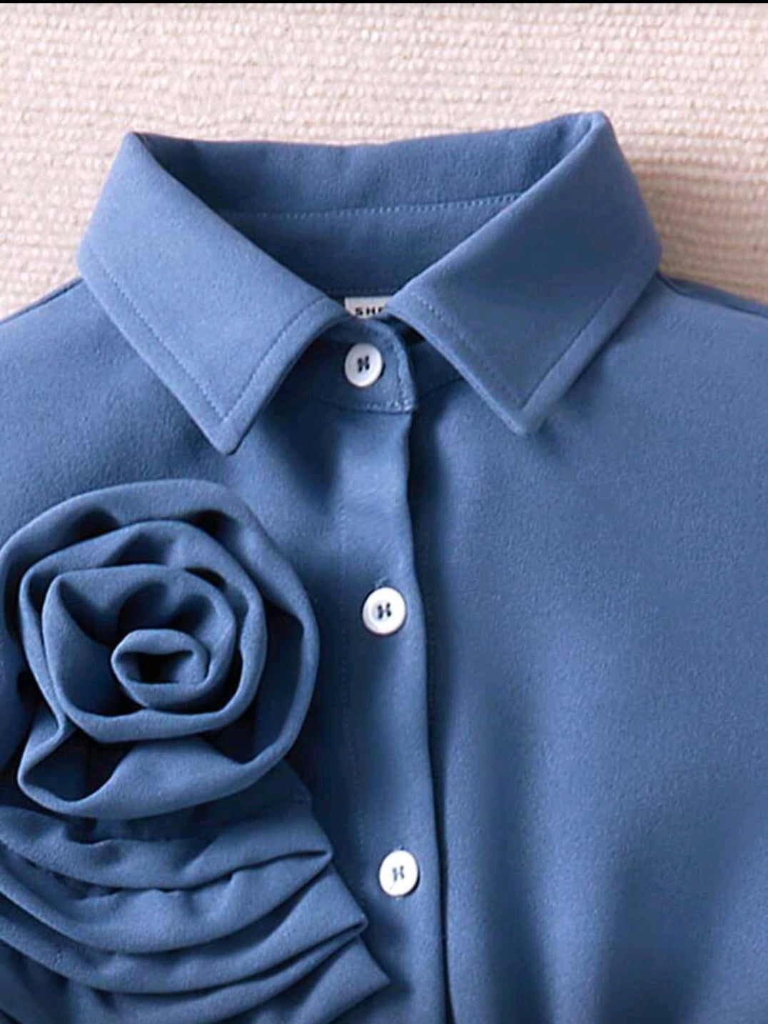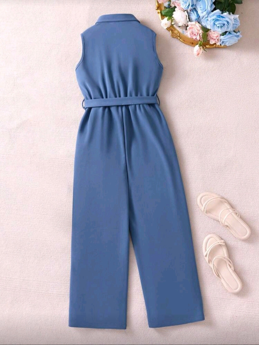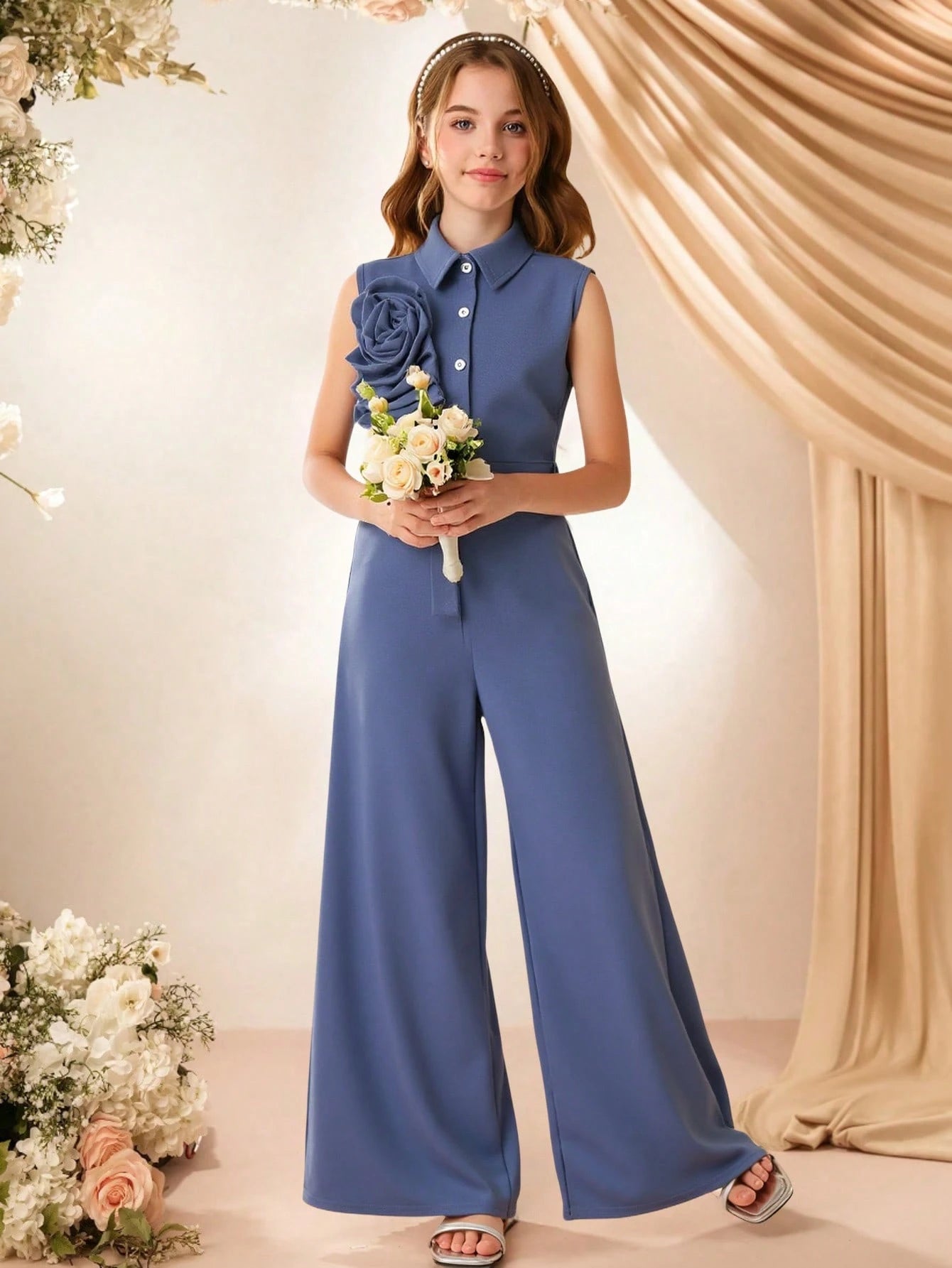 Mono sin mangas con flores hecho a mano para niñas preadolescentes, azul, estilo de oficina elegante apto para la escuela, viajes, todas las estaciones