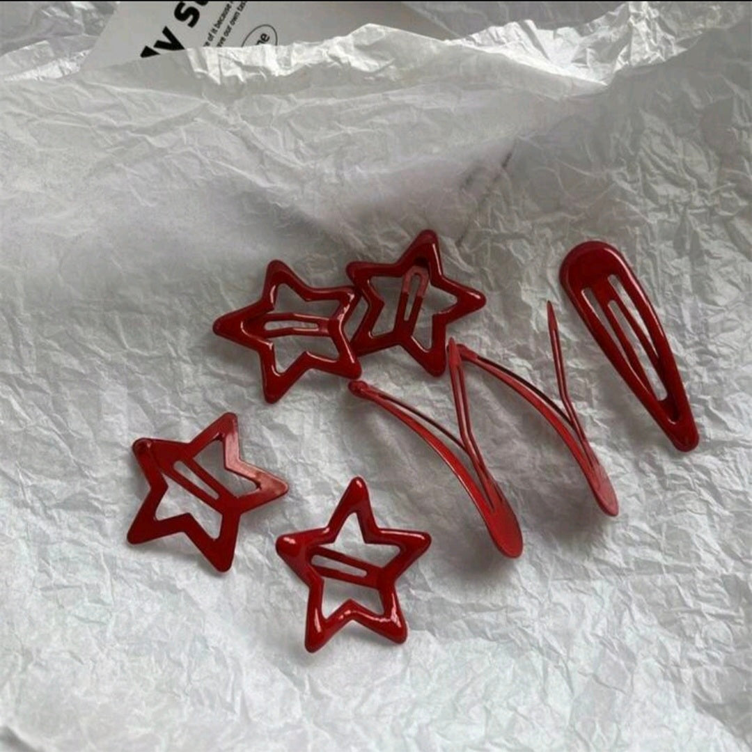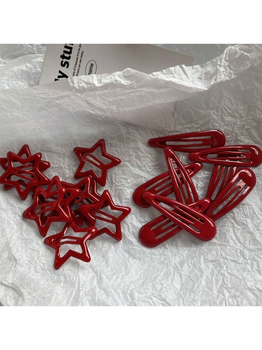 Set de 10 pinzas para el cabello con diseños de gota de aceite roja, estrella y gota de agua, adecuadas para uso diario, en el hogar, para ir al trabajo y decorar atuendos universitarios, con un estilo simple y lindo. Pasadores y pinzas para el cabello, útiles escolares