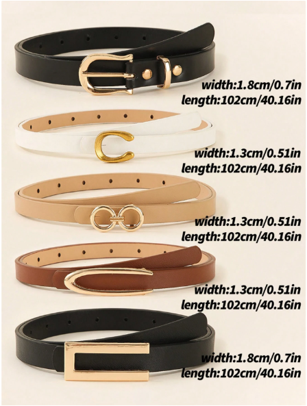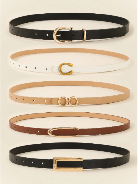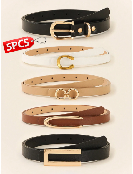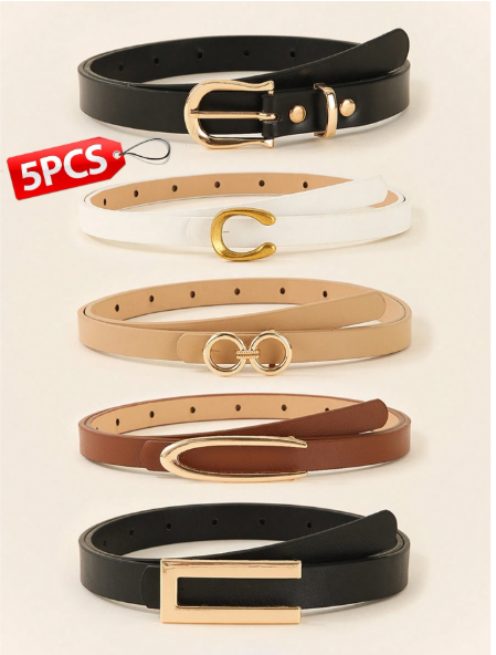 Set de 5 cinturones elegantes de unicolor minimalista para damas, con hebilla de metal en forma de C y U, adecuados para vestidos y pantalones, apropiados para estilo casual, de oficina y escolar, gran opción de regalo para otoño, Halloween