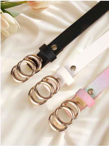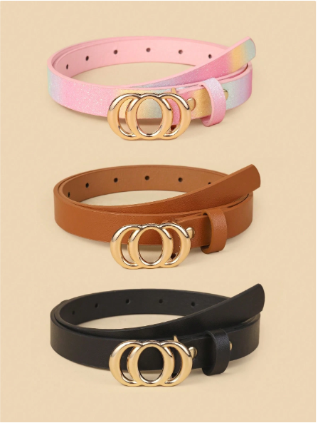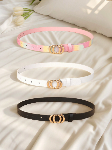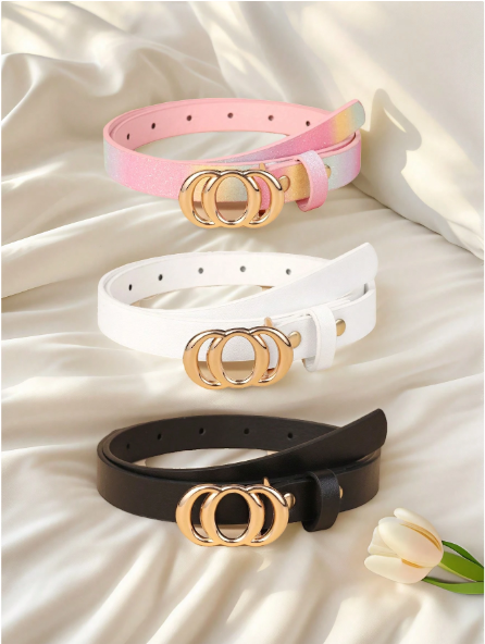 Set de 3 cinturones slim para niños, cinturón decorativo de alta calidad de piel sintética (PU) para jeans y vestidos