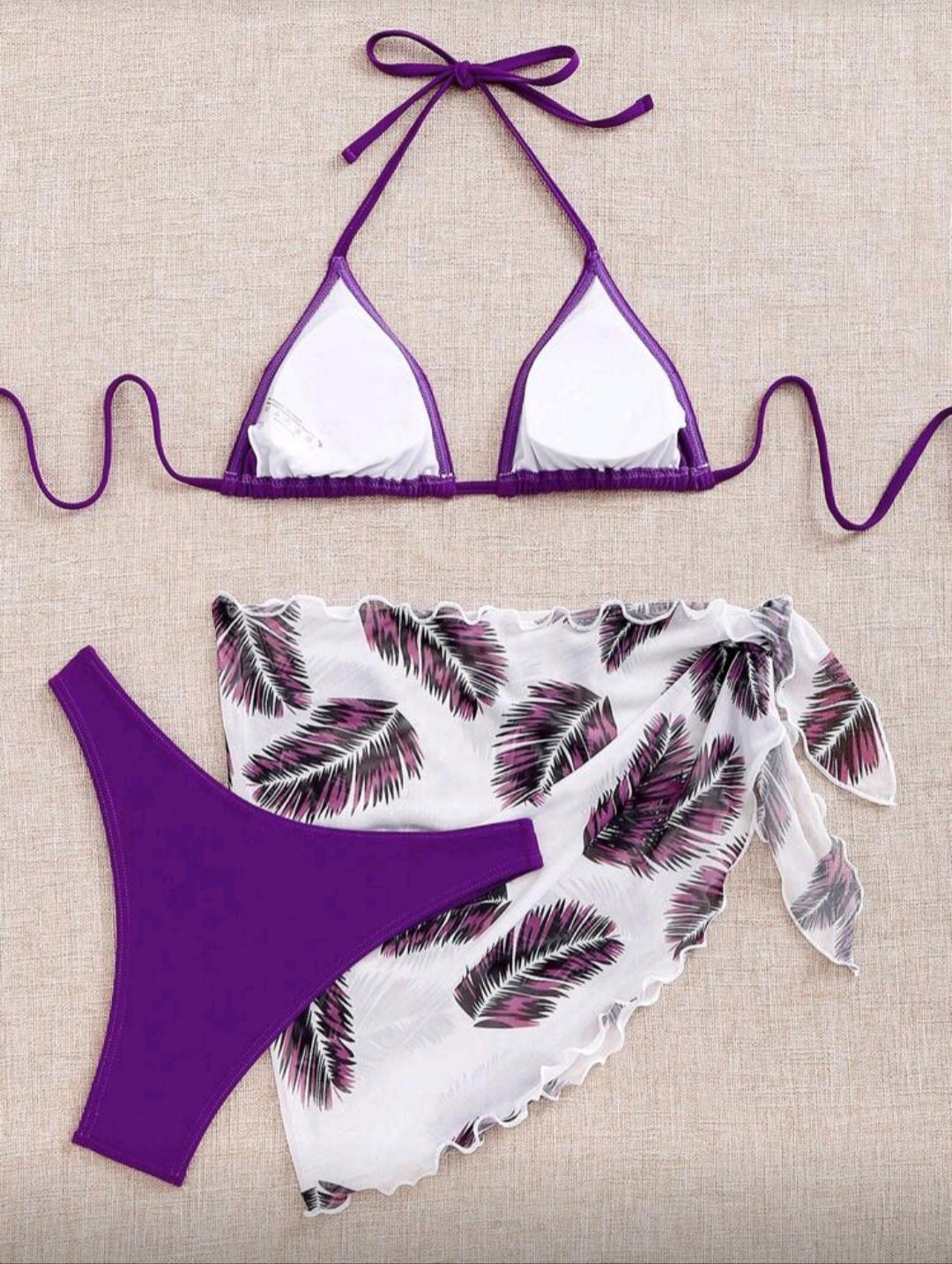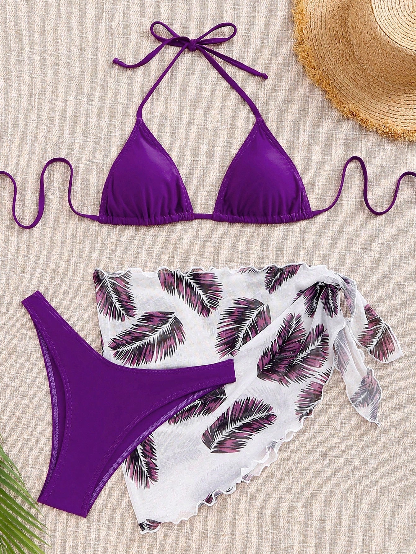 SHEIN Swim Set de 3 piezas: Bikini de playa de vacaciones con estampado aleatorio y minifalda tipo cubrecuerpo