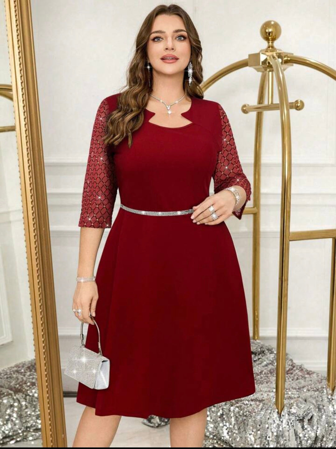 Gownix Vestido de manga corta de unicolor para tallas grandes, con estilo para el verano (no incluye cinturón).