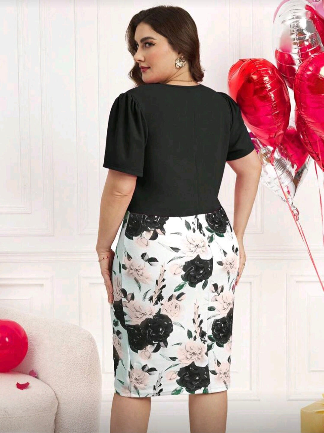 Reflora Vestido de dos piezas de punto elástico con estampado floral primaveral para mujer de talla grande, elegante y romántico para uso diario, Día de San Valentín