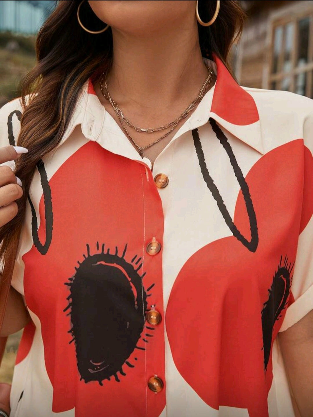 SHEIN LUNE Vestido de talla grande con patrón de flores en color naranja y amarillo claro