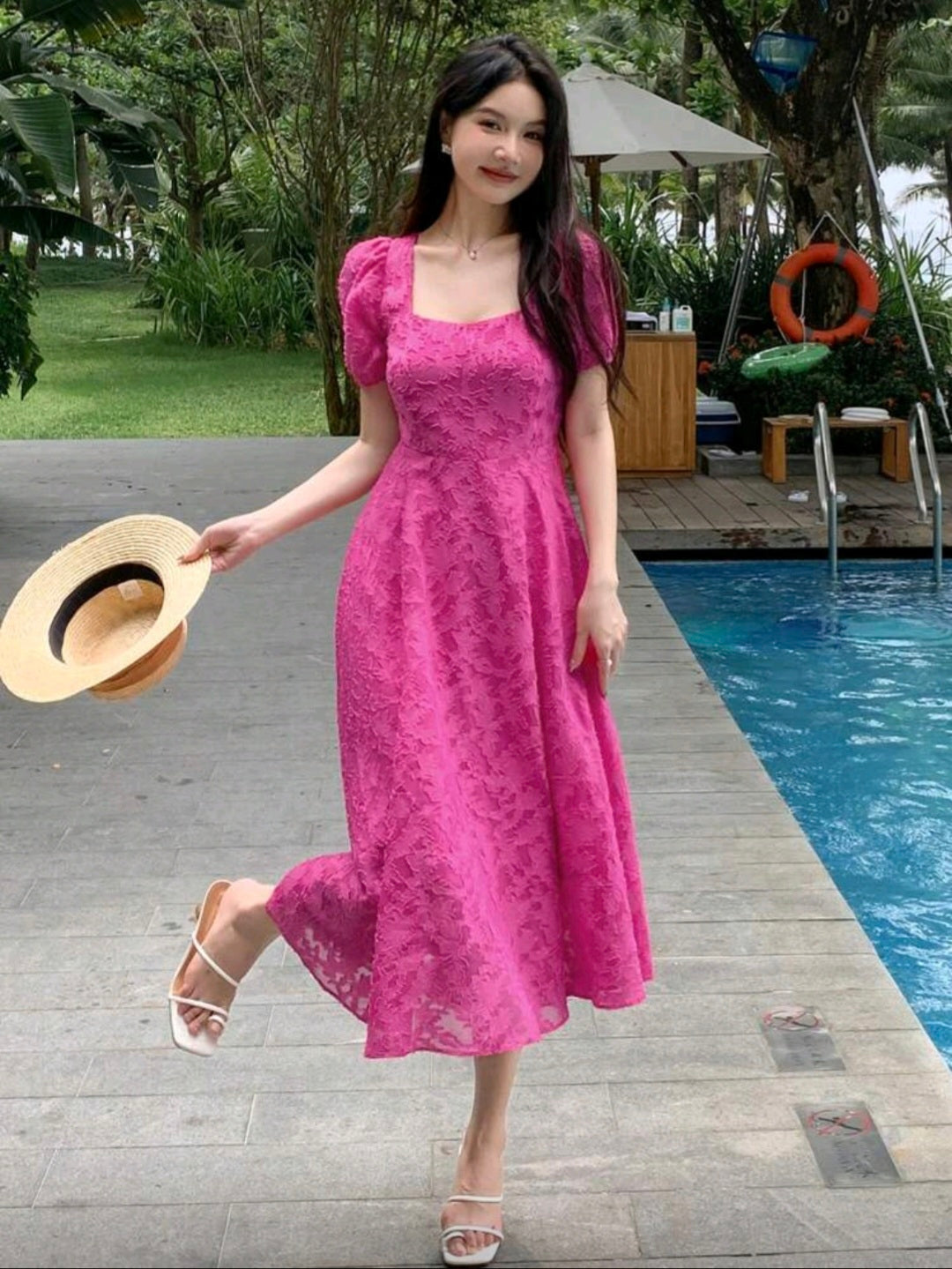 DAZY Vestido casual de primavera/verano para mujer con cuello cuadrado y manga corta, vestido de fiesta