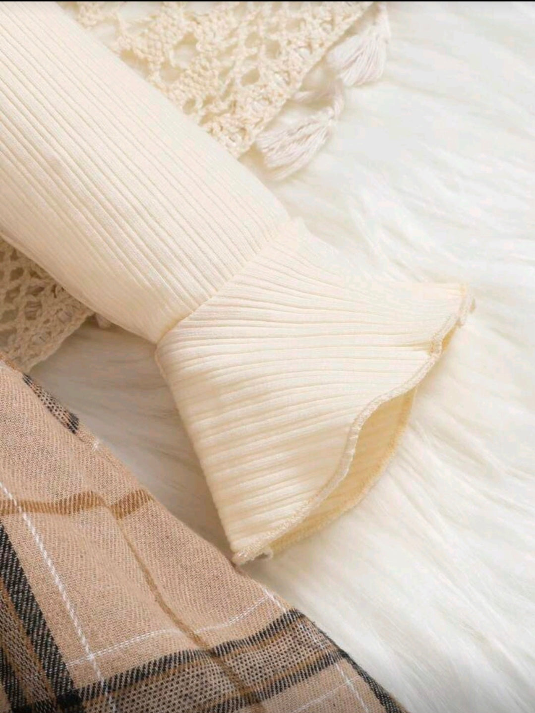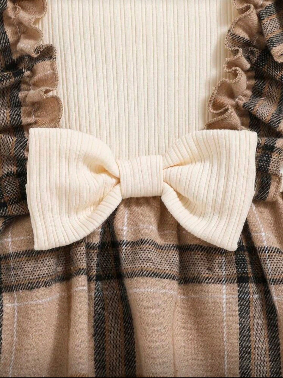 SHEIN Vestido de 2 en 1 para bebé niña con estampado de cuadros, volantes, mangas abullonadas y moño delantero, para Navidad