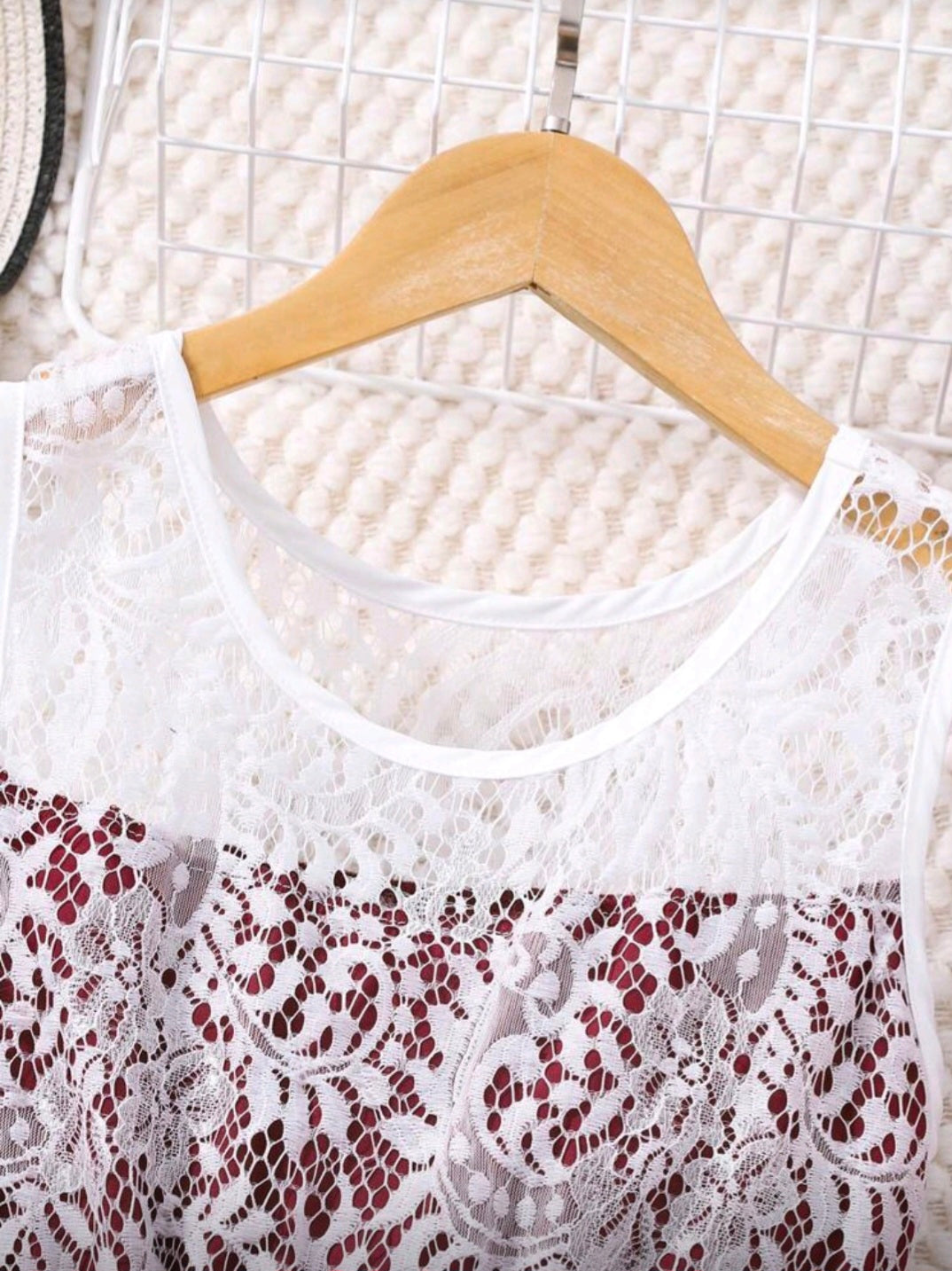 Vestido elegante y dulce con contraste de color y encaje para niñas preadolescentes