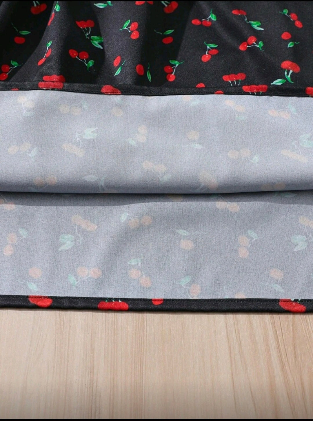 1 pieza Vestido mini con estampado de cerezas, de manga abombada, sin espalda y con lazo para adolescentes/niñas jóvenes, primavera/verano