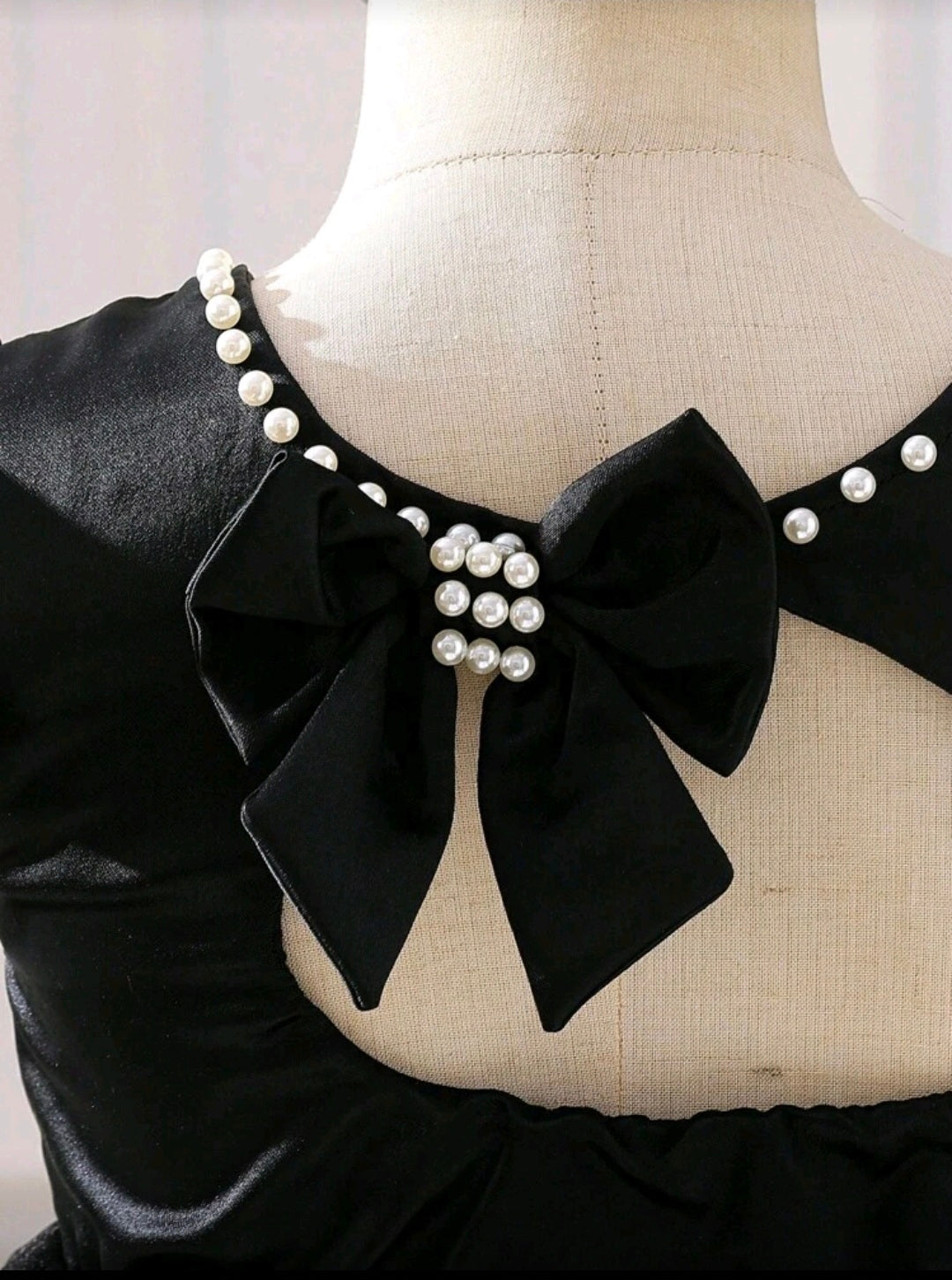 Elladie kids Vestido de princesa dulce y lindo para niñas, cuello redondo, con cuentas, espalda hueca, cintura con cuentas, dobladillo de malla, estilo coreano, vestido de moda, adecuado para fiestas, cumpleaños, regalos, vacaciones, todas las estaciones