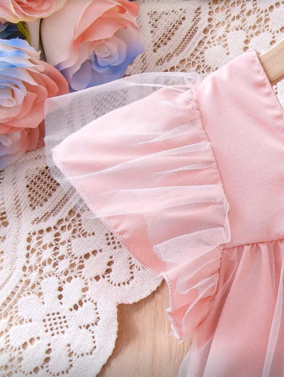 SHEIN Vestido elegante con estilo de princesa del Medio Oriente para niñas, con tirantes de malla bordados con mariposas, perfecto para fiestas al aire libre, bodas, banquetes y vacaciones de verano