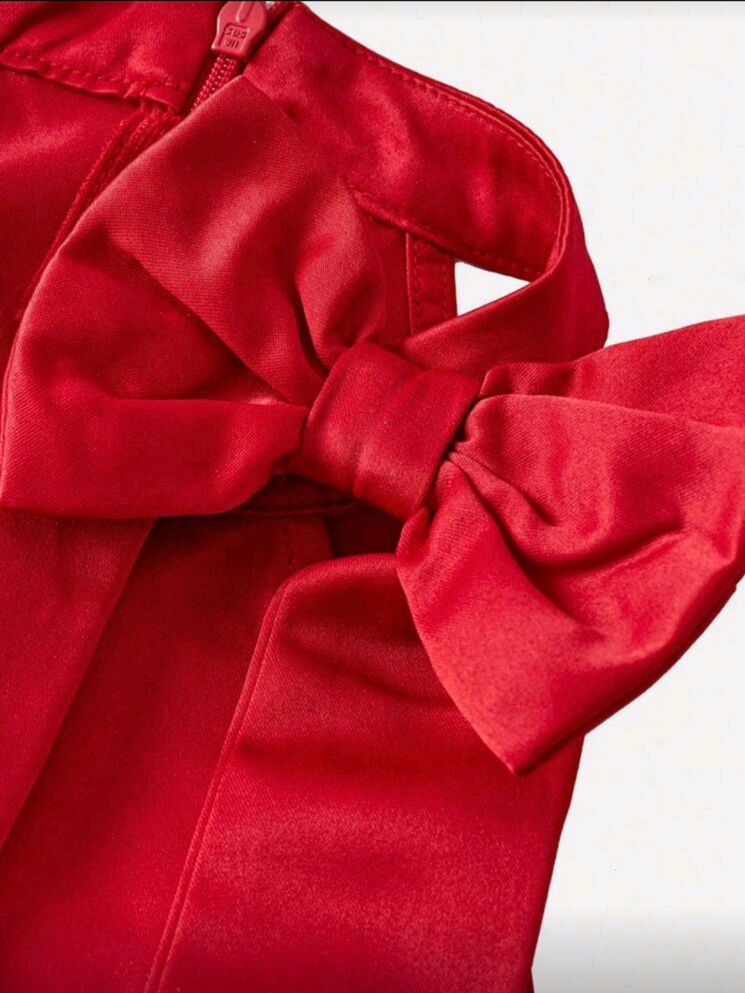 Girlism Vestido mini dulce con hombros descubiertos, fruncido, con decoración de perlas y moño, para niñas preadolescentes. Vestido elegante sin mangas para primavera y verano.