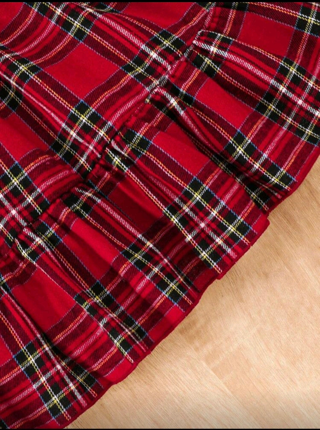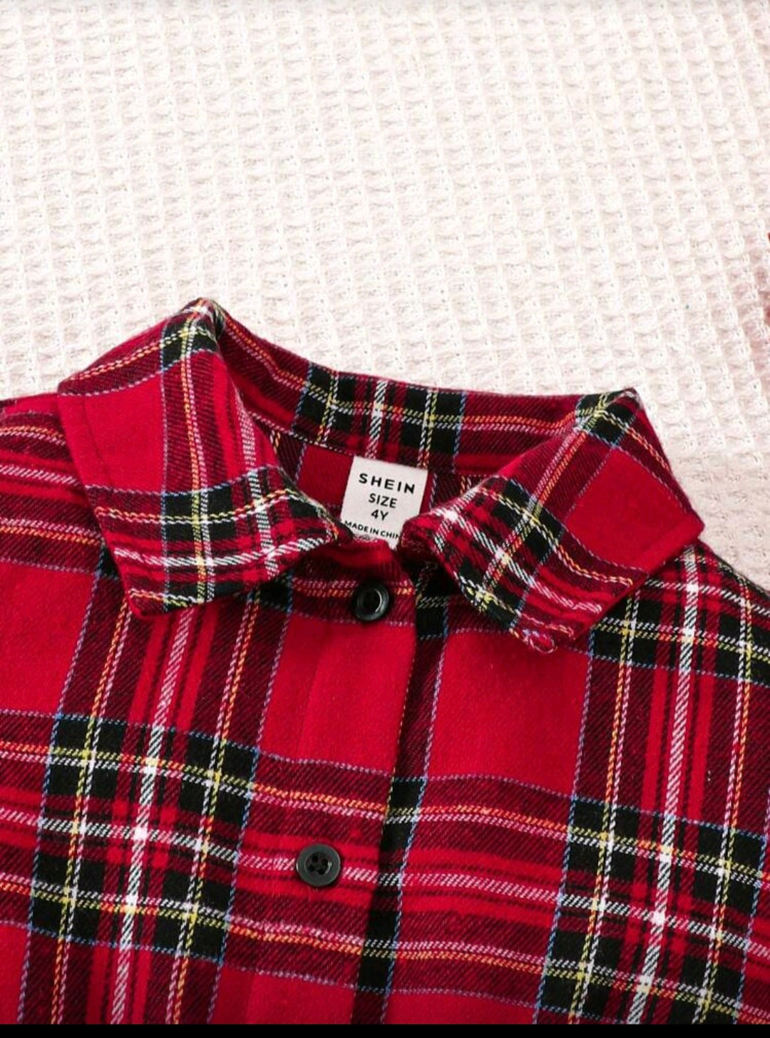 SHEIN Vestido camisa de cuadros rojos para niña, adecuado para uso casual diario y Navidad