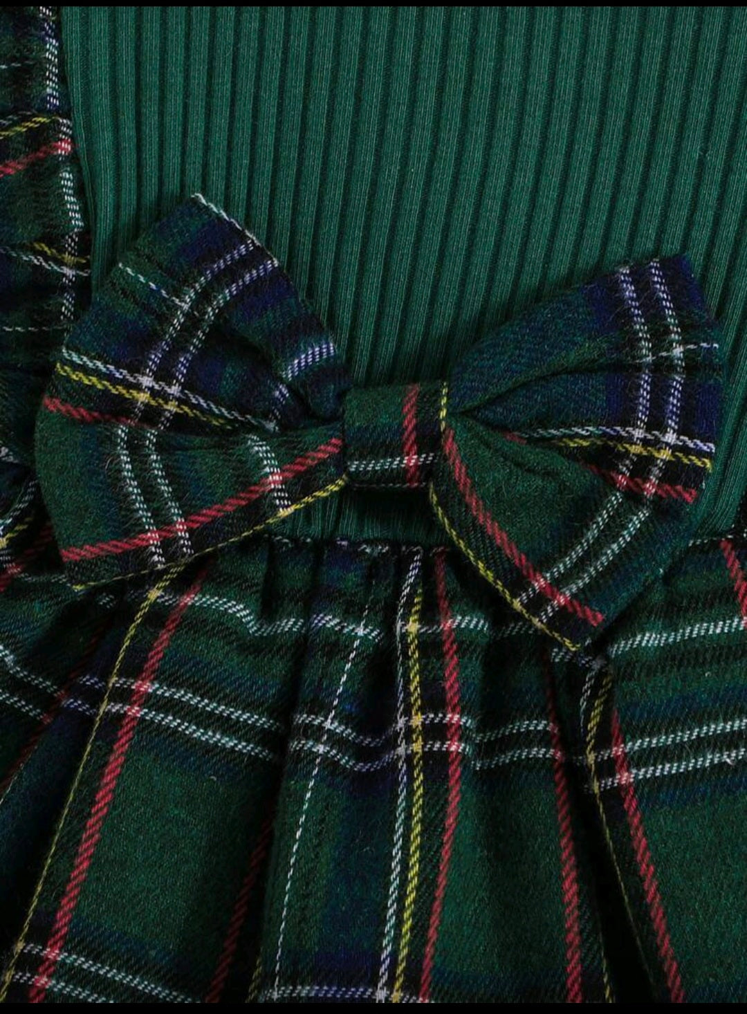 SHEIN Vestido para bebé niña con estampado tartán, con lazo delantero y ribete de volantes con diadema para Navidad
