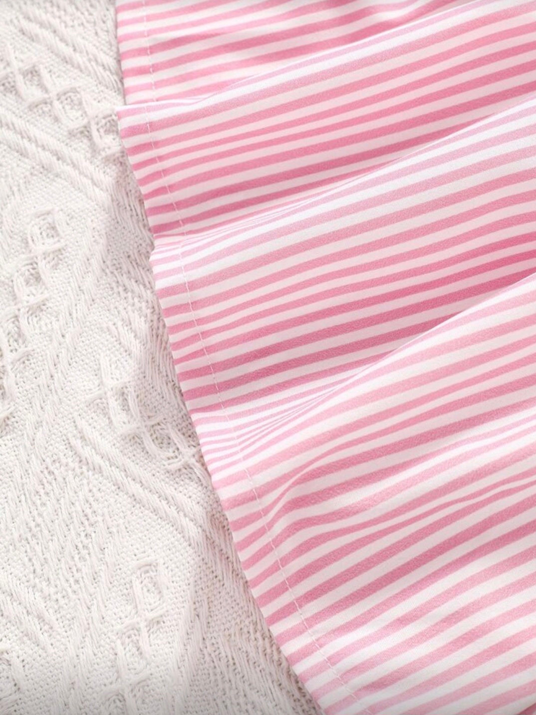 SHEIN Vintaside Kids Vestido A Rayas Para Niñas Con Cuello Asimétrico Y Detalles De Volantes