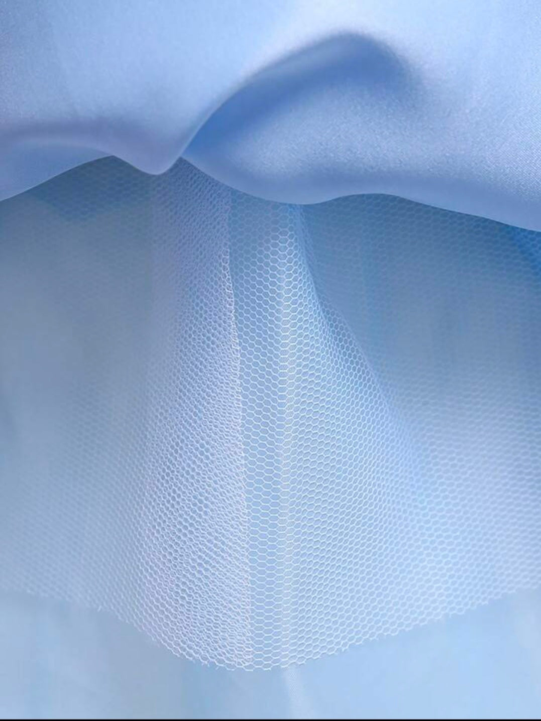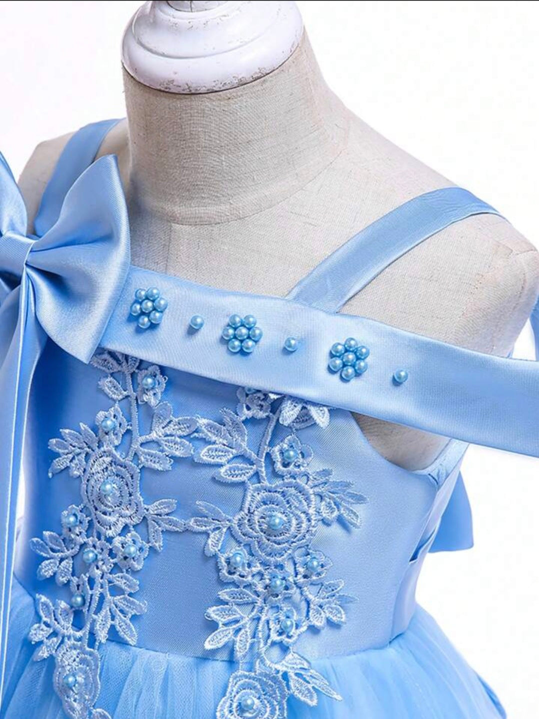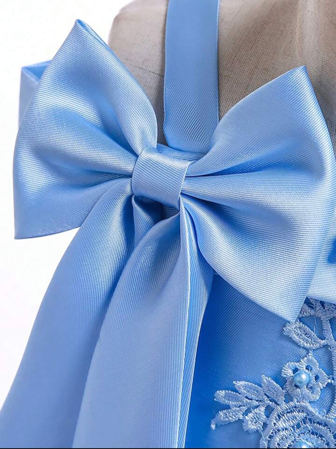 Vestido pomposo sin mangas para niña con parches de malla y satén de unicolor con decoración de moño, elegante y lujoso para fiestas de cumpleaños, no incluye tocado