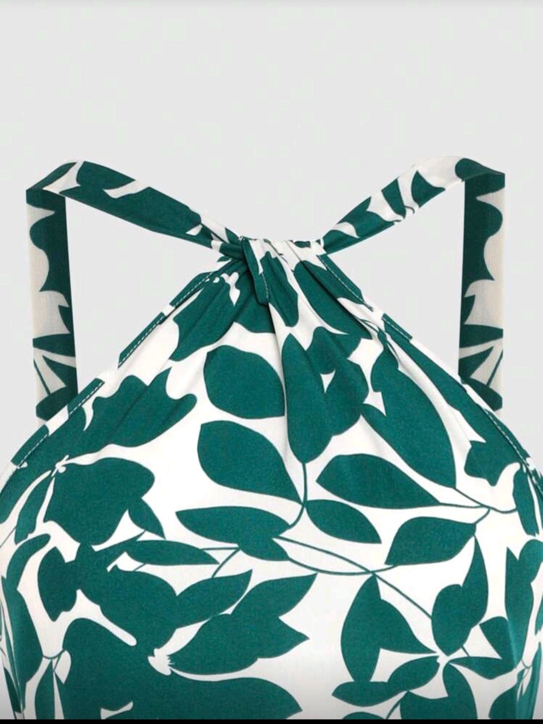 SHEIN Explorewe Vestido de una pieza de estilo europeo y americano para adolescentes, de elegante escote colgante, cintura impresa, ajuste ceñido, elegante y adecuado para invitados a bodas de verano